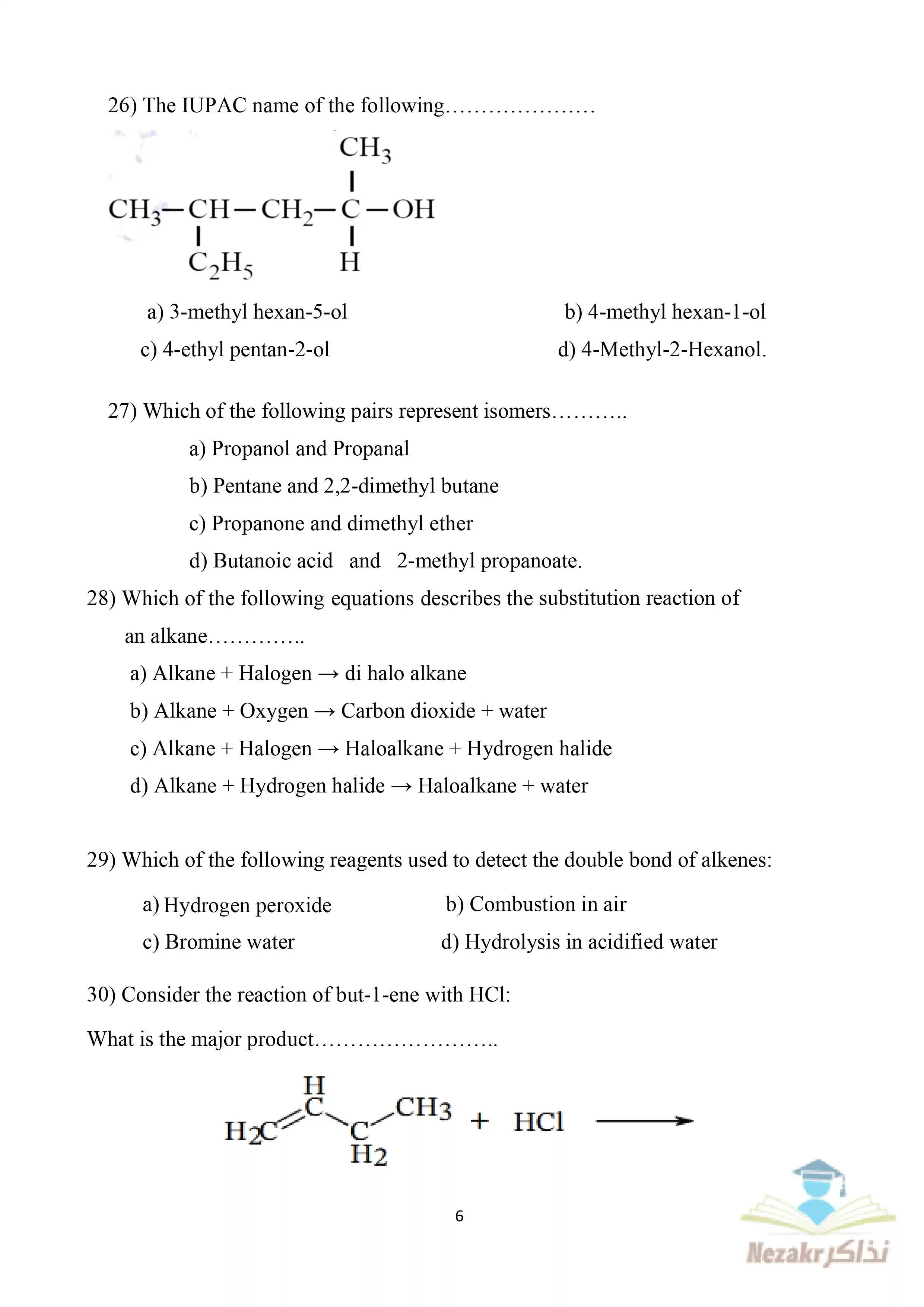 صفحة 6 من 10 صفحة من ملف: النموذج الاسترشادي الثاني في Chemistry الكيمياء باللغة الإنجليزية للصف الثالث الثانوي 2025 - Nezakr