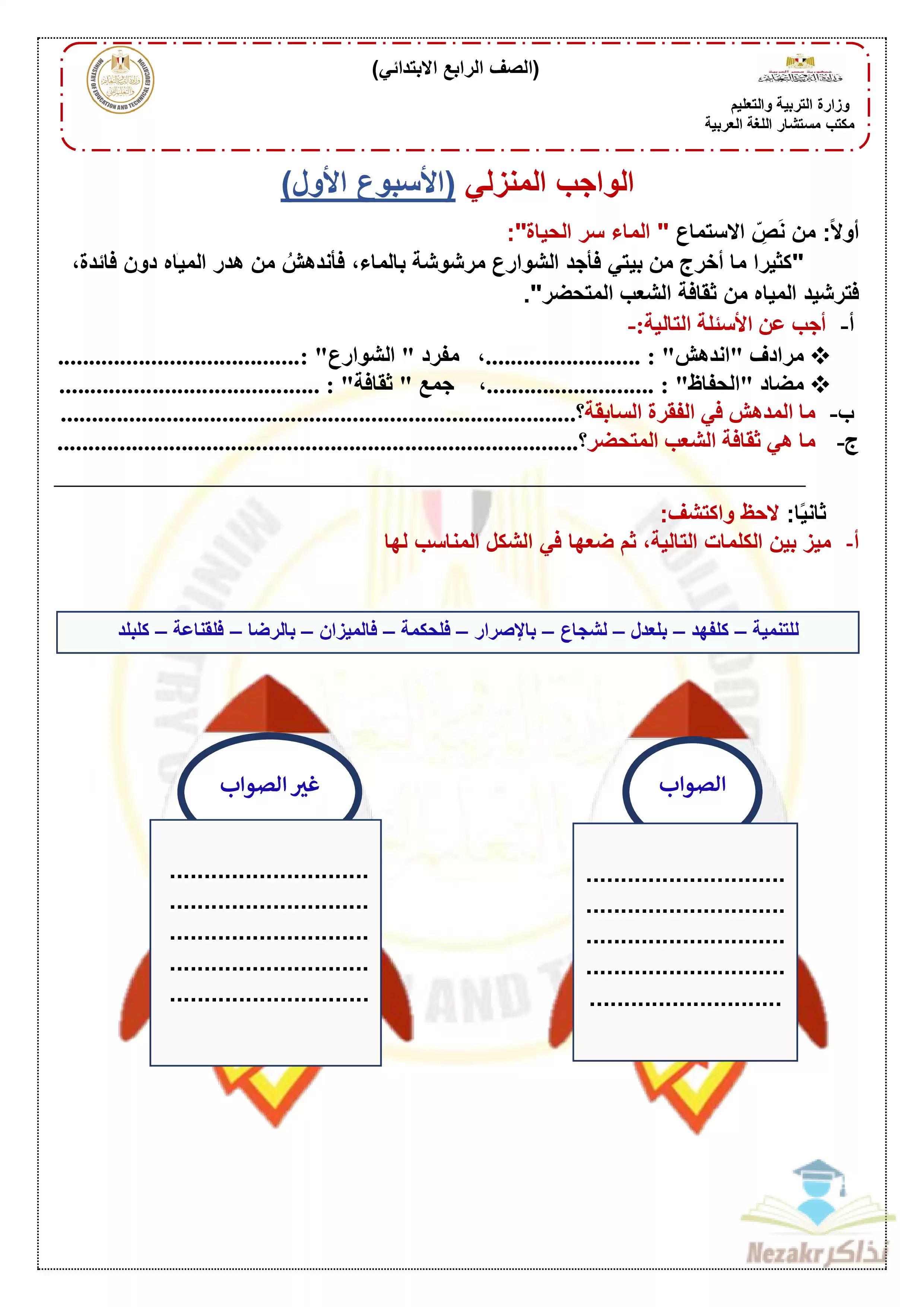 | بيانات الملف: (التقييمات والآداءات الصفية والمنزلية للأسبوع الأول في اللغة العربية للصف الرابع الإبتدائي الترم الثاني 2025) | |