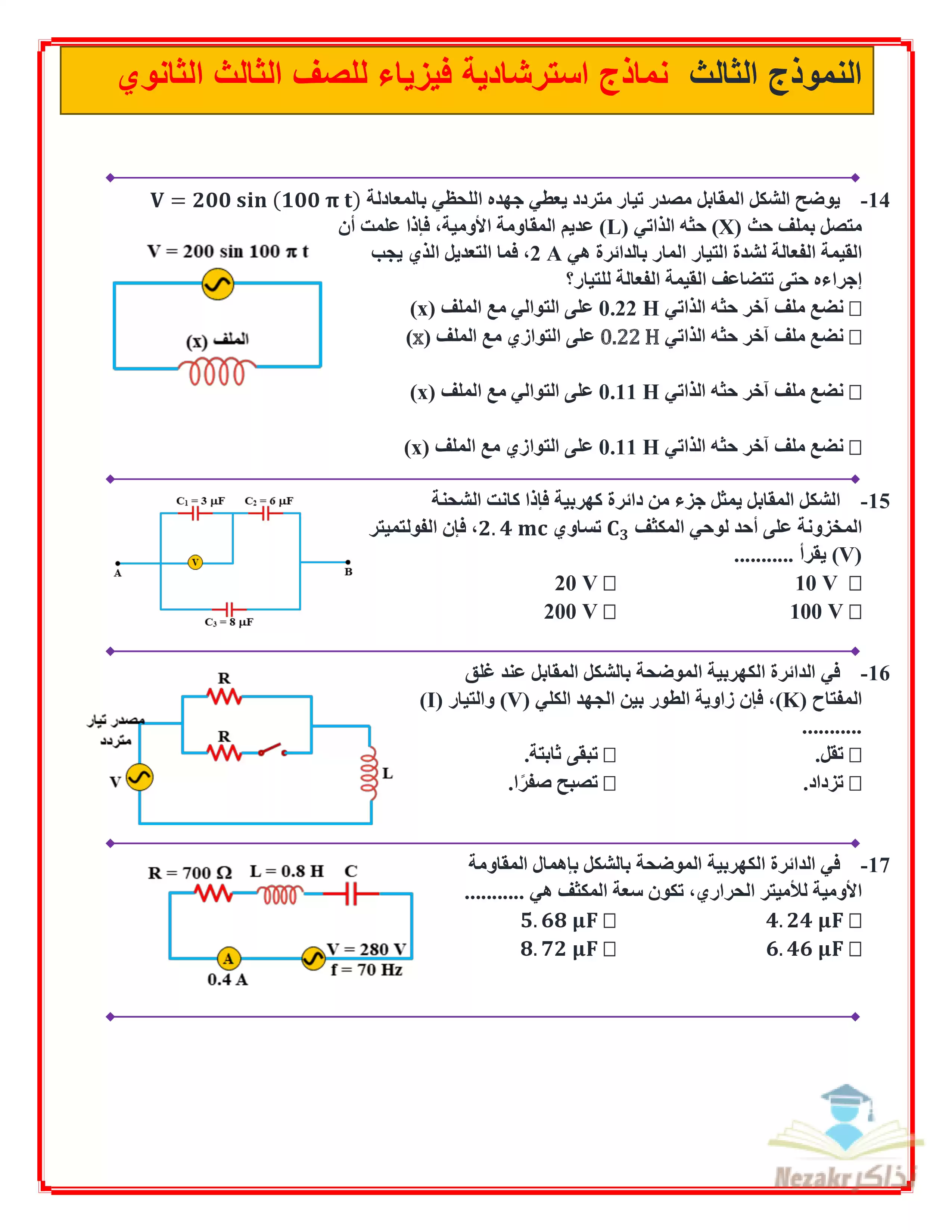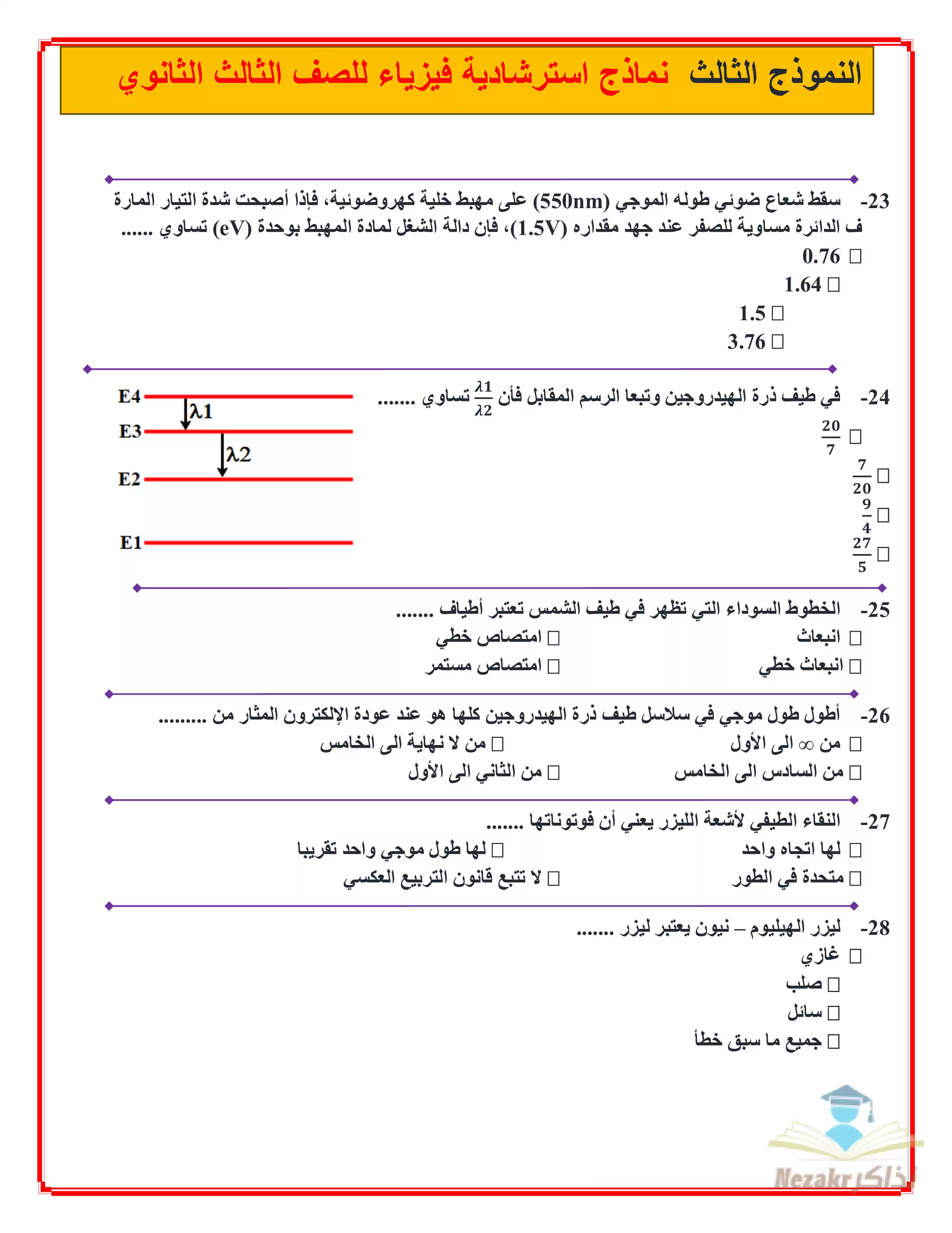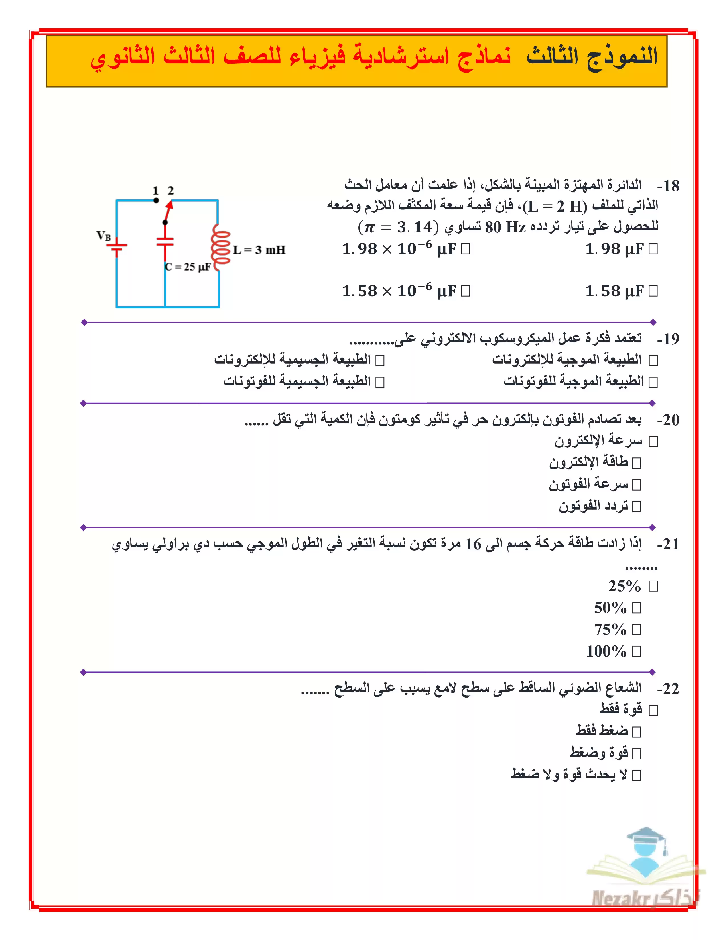بيانات الملف: (نماذج الوزارة الاسترشادية في امتحان الفيزياء للصف الثالث الثانوي 2025 - Nezakr)