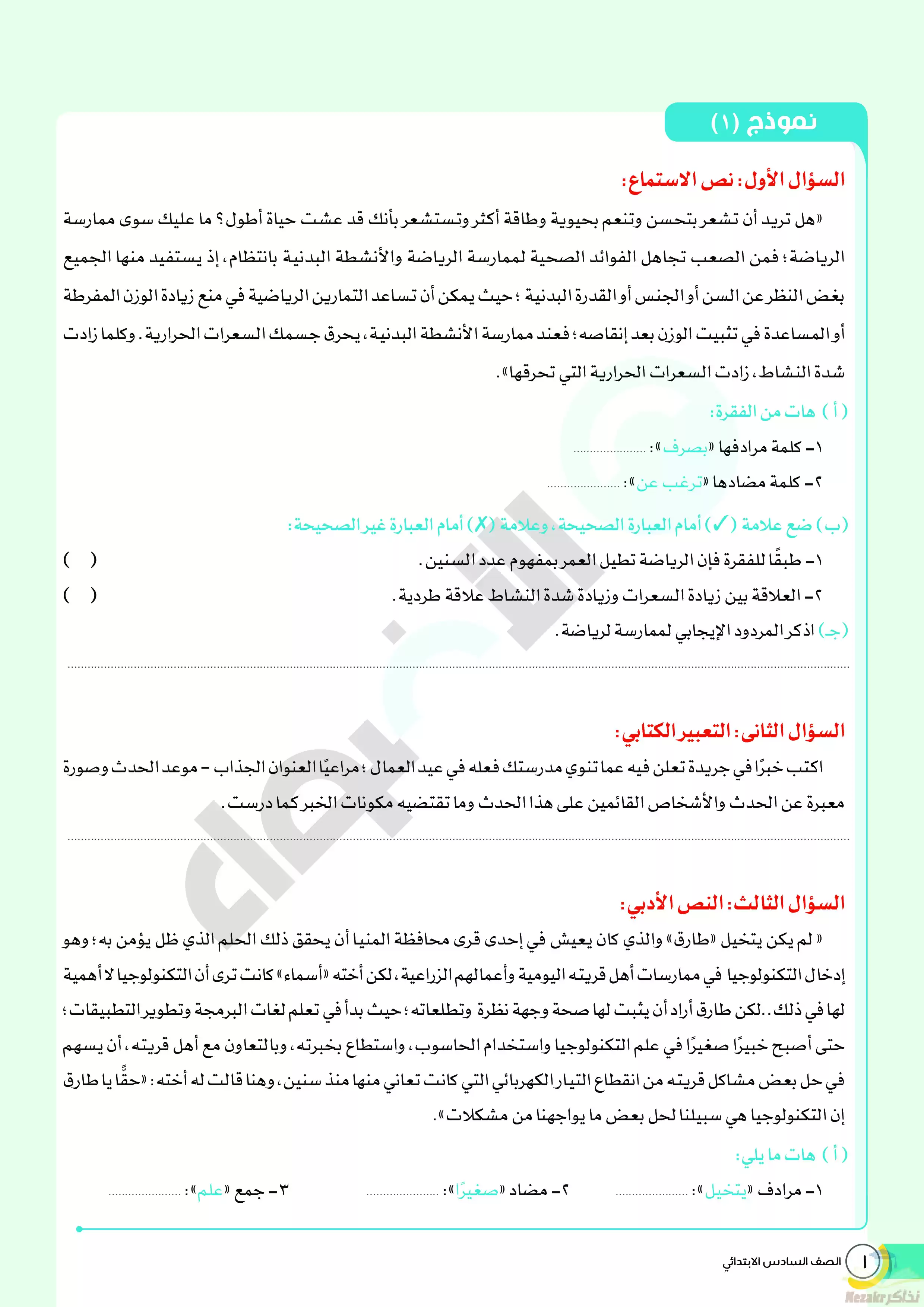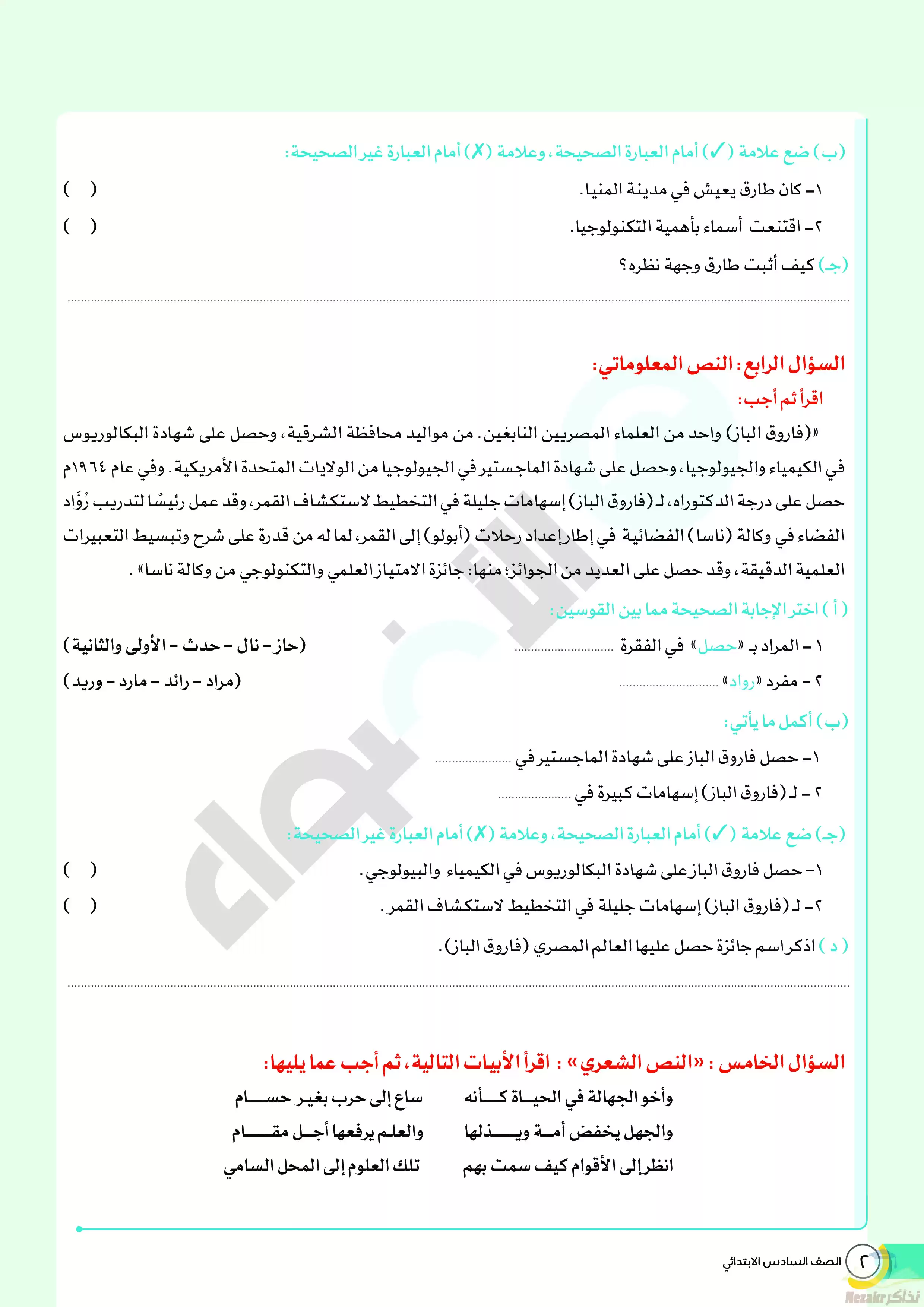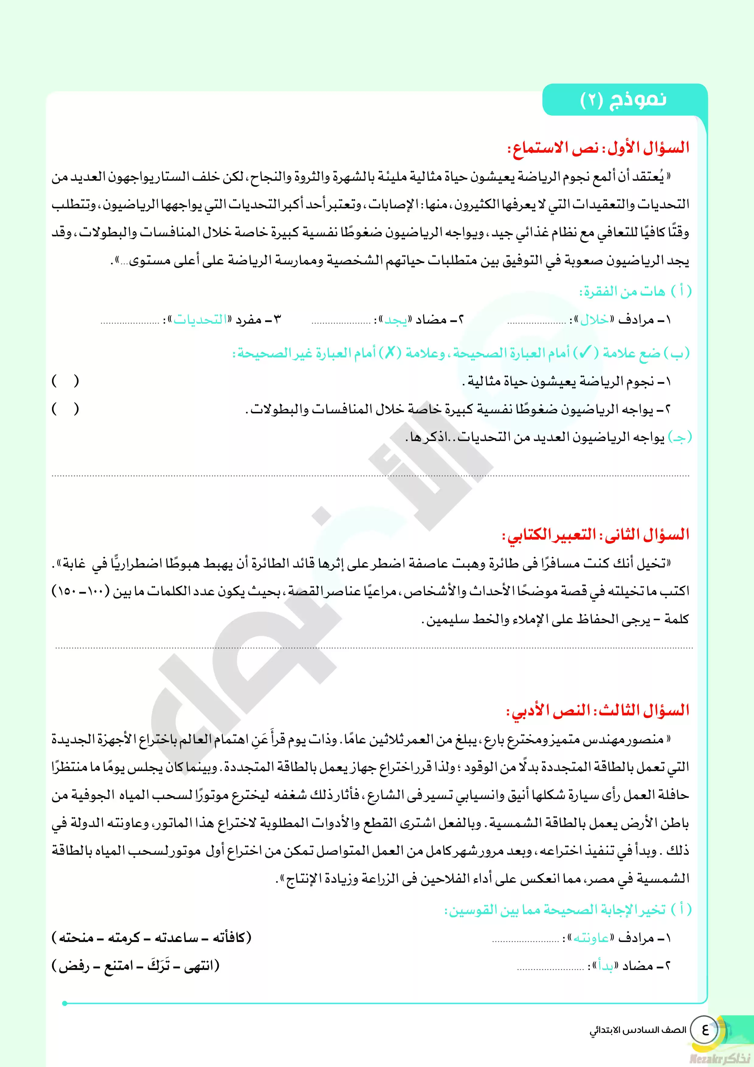 صفحة 6 من 144 صفحة من ملف: نماذج الأضواء الاسترشادية لشهر مارس 2024 للصف السادس الإبتدائي بإجاباتها النموذجية في جميع المواد