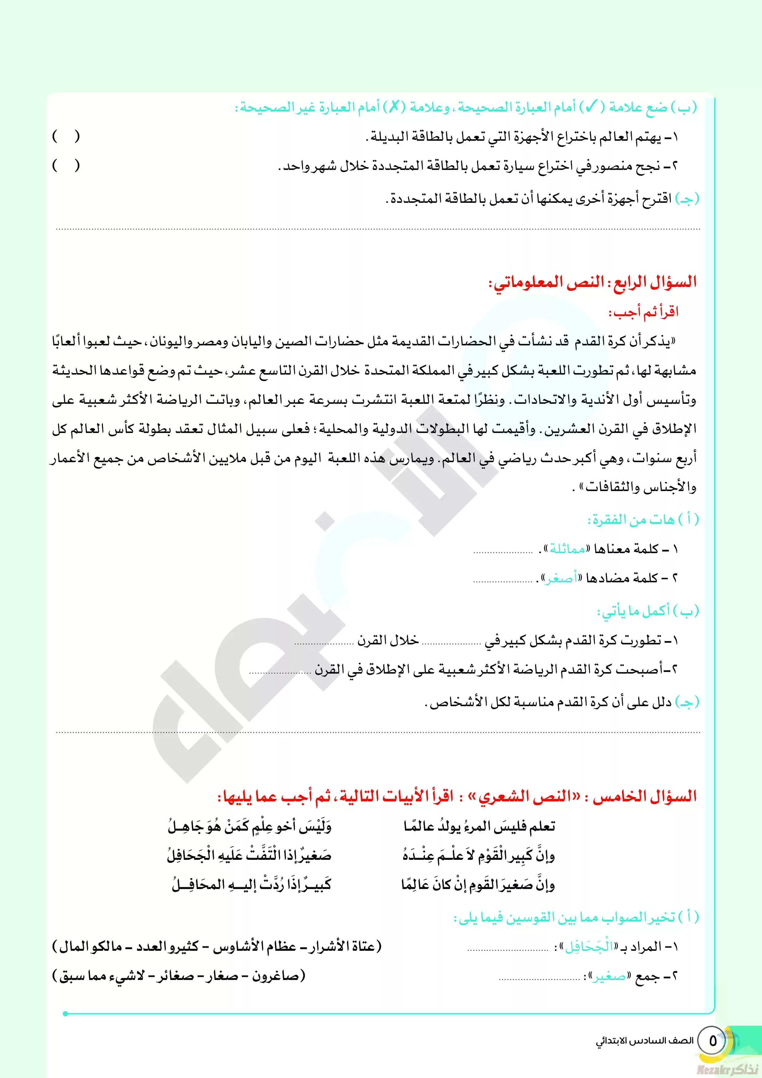 • المحتوى المضاف مؤخراً إلى قسم الصف السادس الإبتدائي