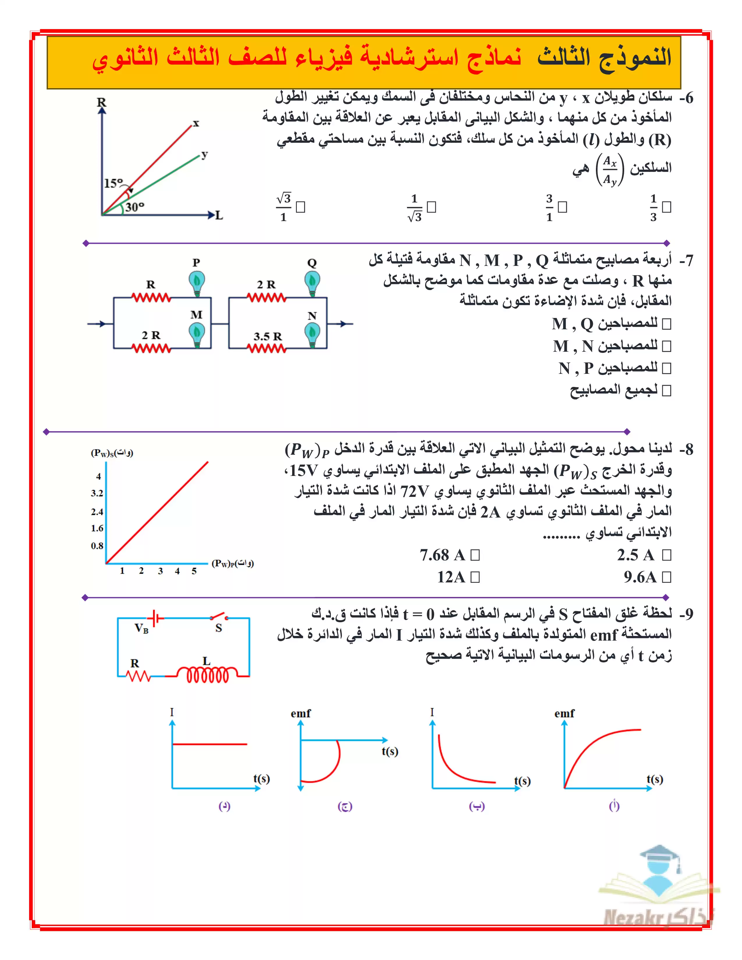 بيانات الملف: (النموذج الاسترشادي الأول في الفيزياء للصف الثالث الثانوي 2025 - Nezakr)