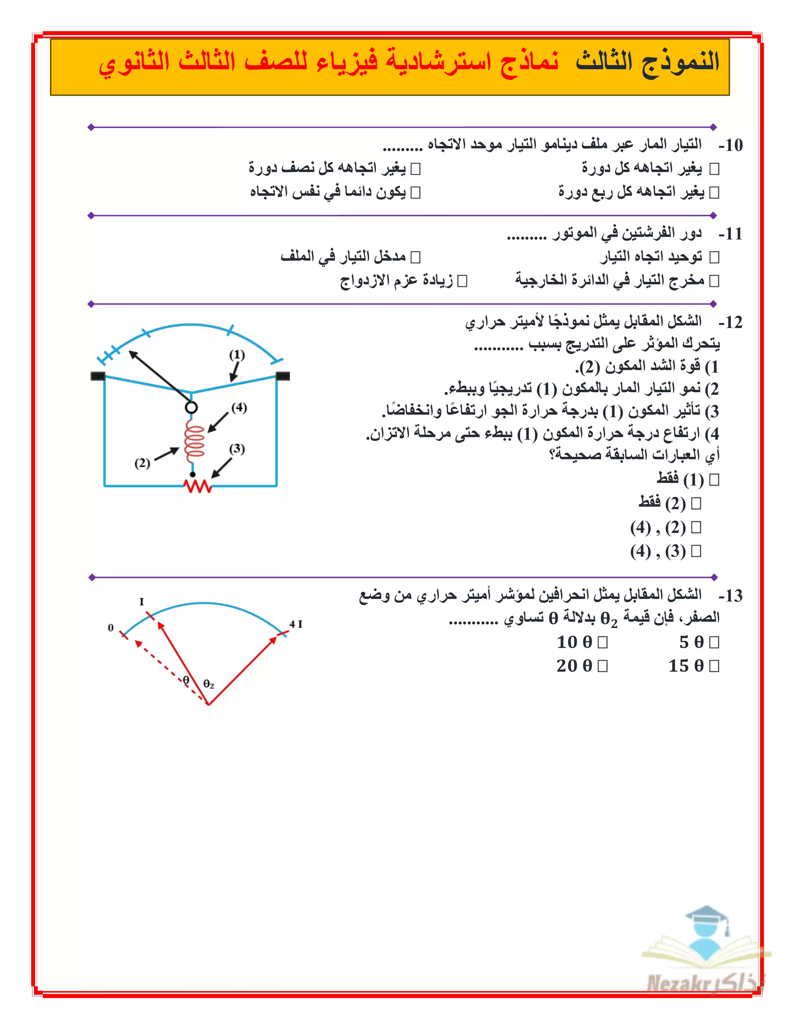 صفحة 3 من 12 صفحة من ملف: النموذج الاسترشادي الأول في الفيزياء للصف الثالث الثانوي 2025 - Nezakr