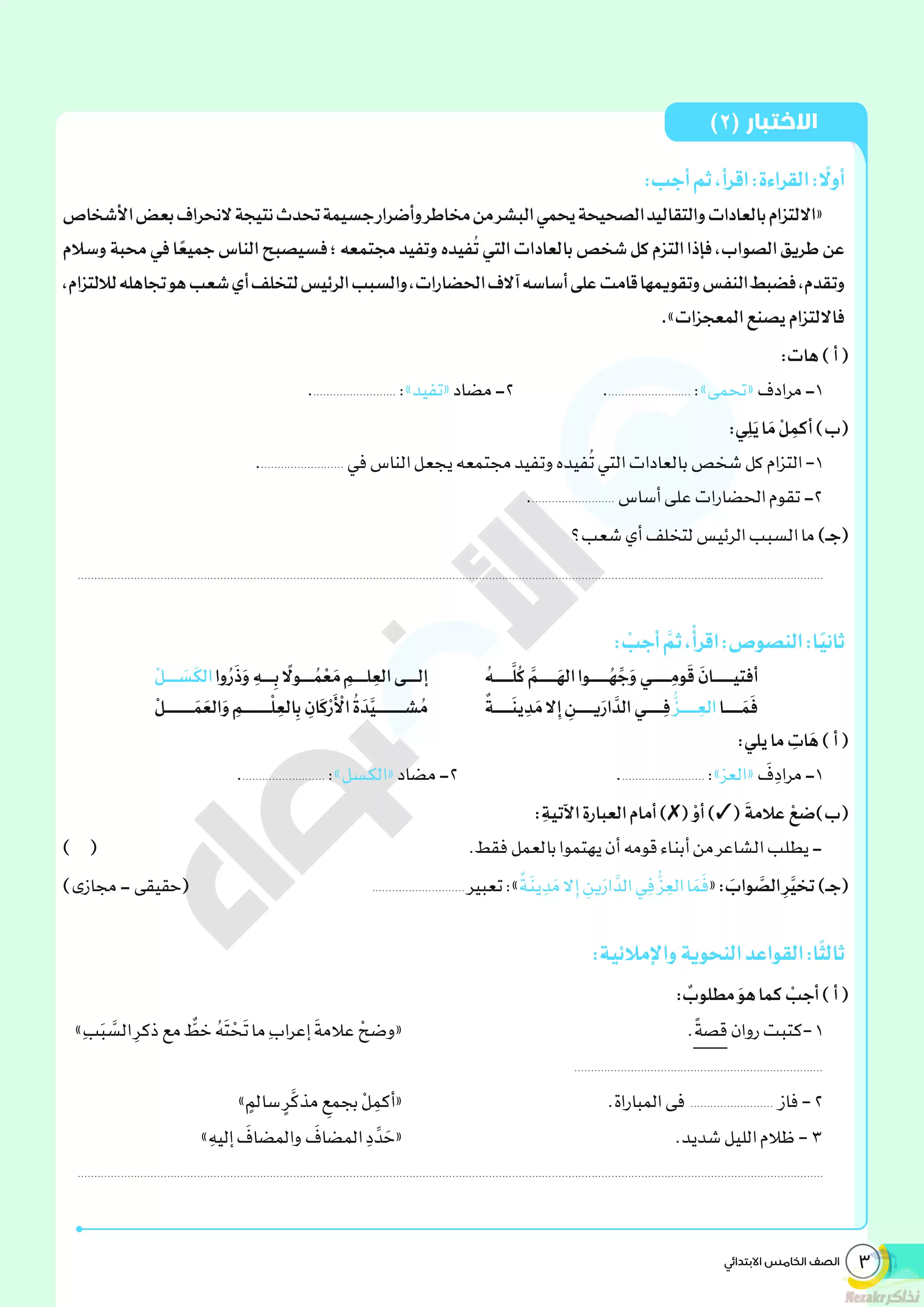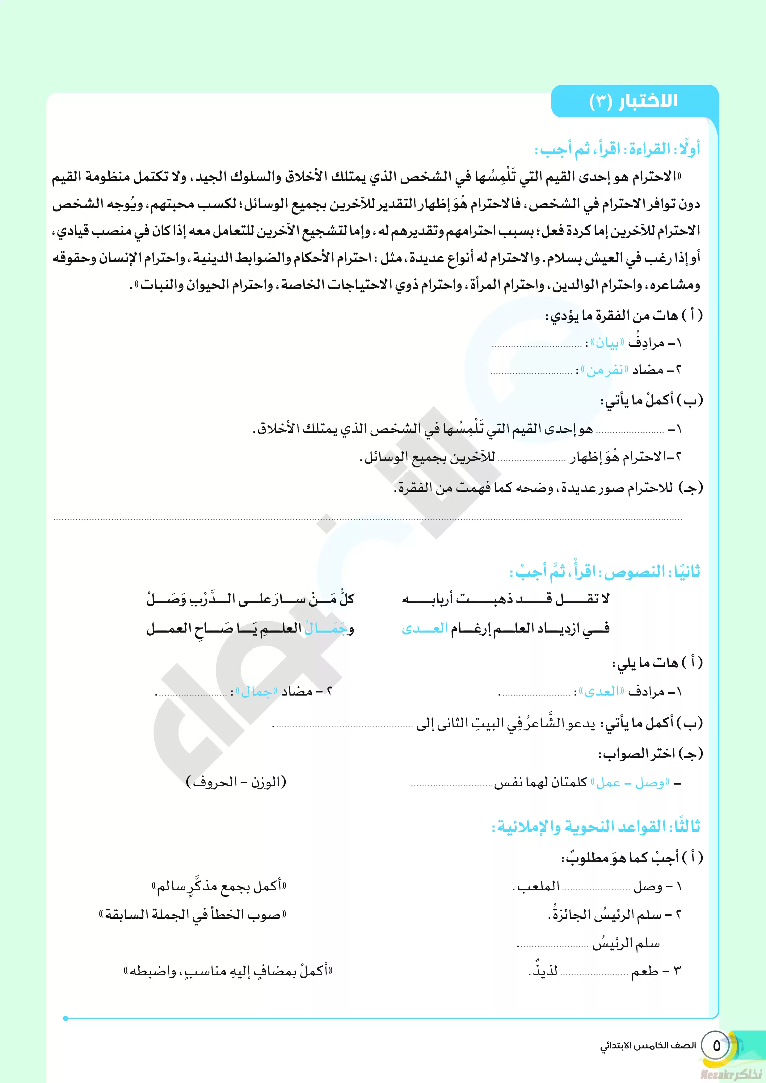 | بيانات الملف: (نماذج الأضواء الاسترشادية لشهر مارس 2024 للصف الخامس الإبتدائي بإجاباتها النموذجية في جميع المواد) | |