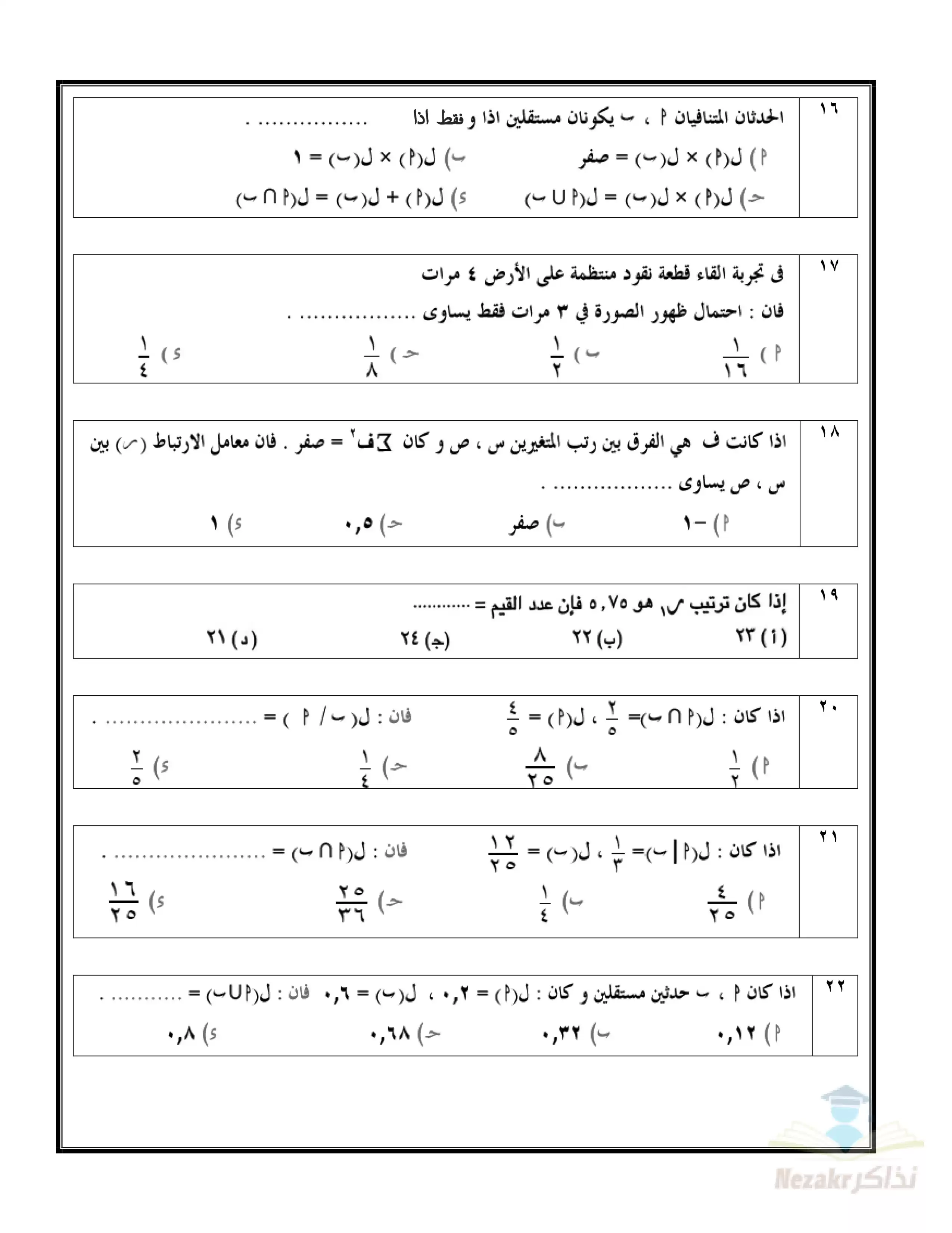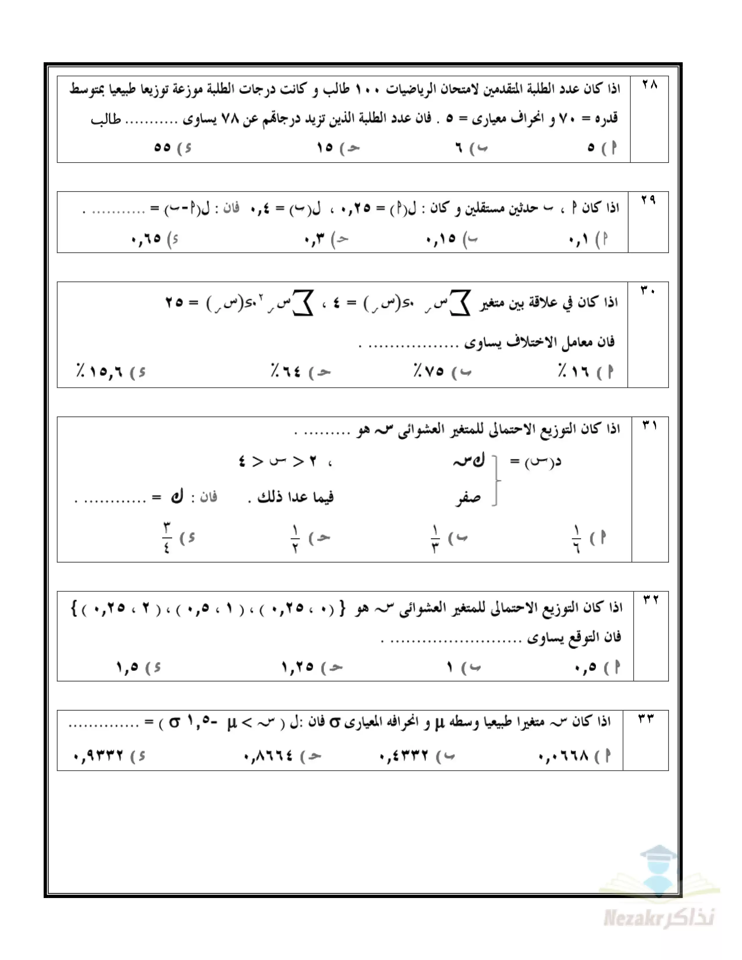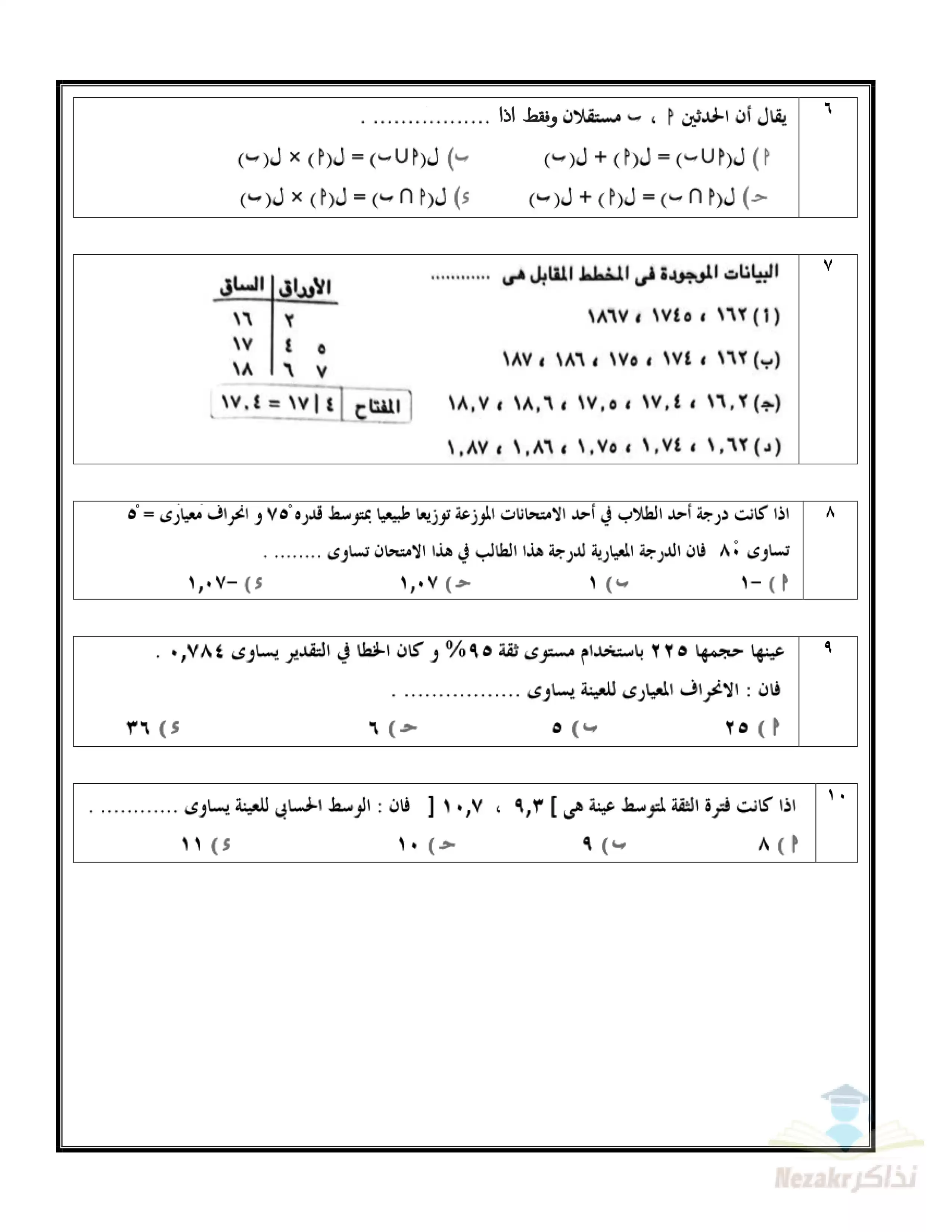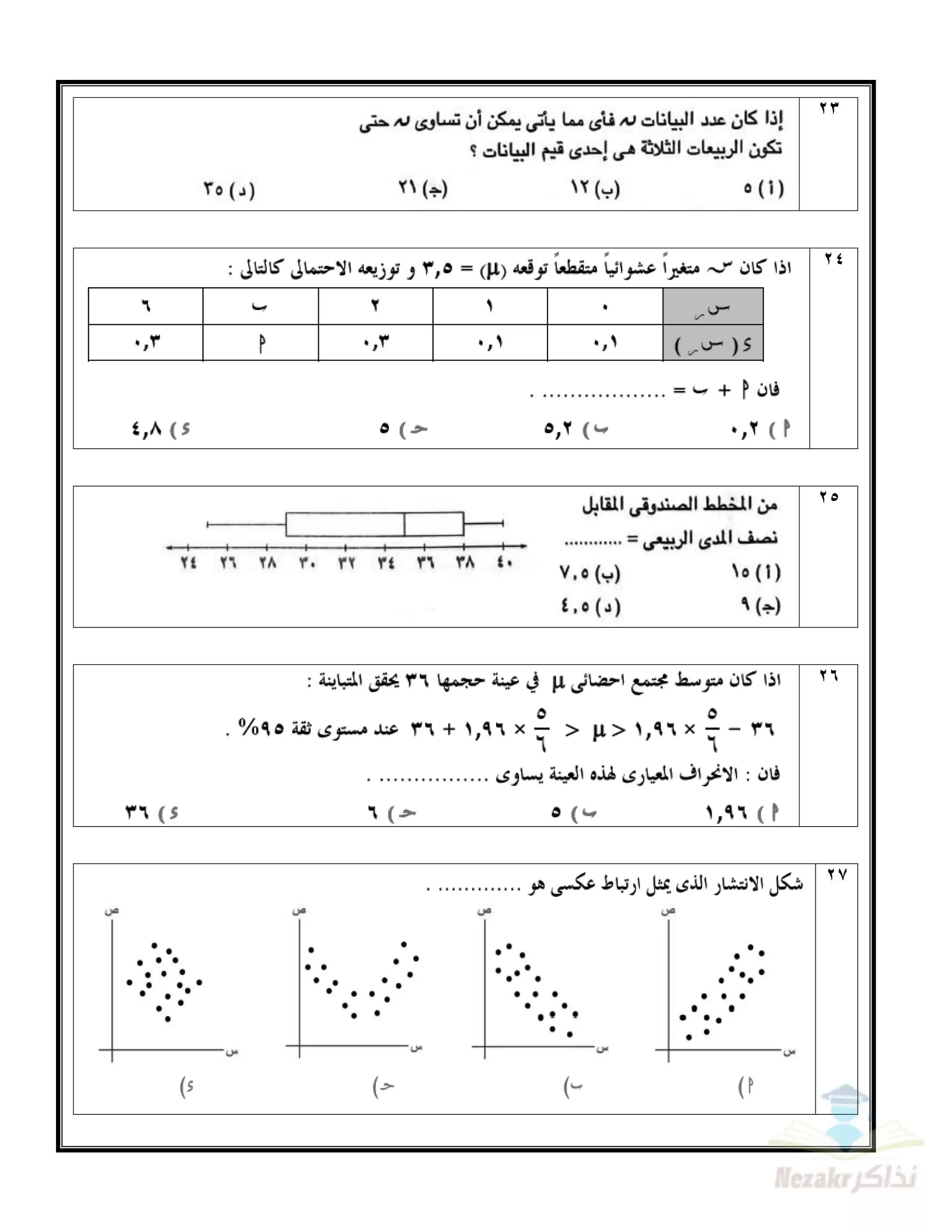 | بيانات الملف: (نماذج الوزارة الاسترشادية في امتحان الاحصاء للصف الثالث الثانوي 2025 - Nezakr) | |