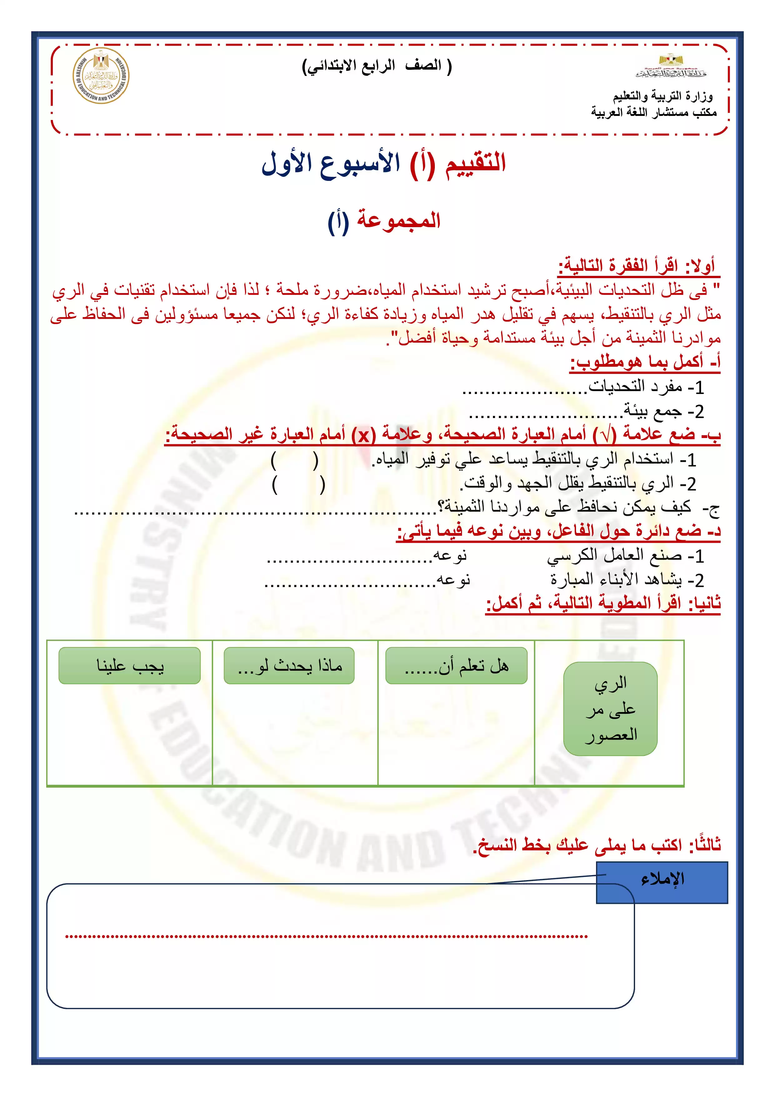 | بيانات الملف: (التقييمات الخاصة بالأسبوع الثاني في اللغة العربية للصف الرابع الإبتدائي الترم الثاني 2025 - Nezakr) | |