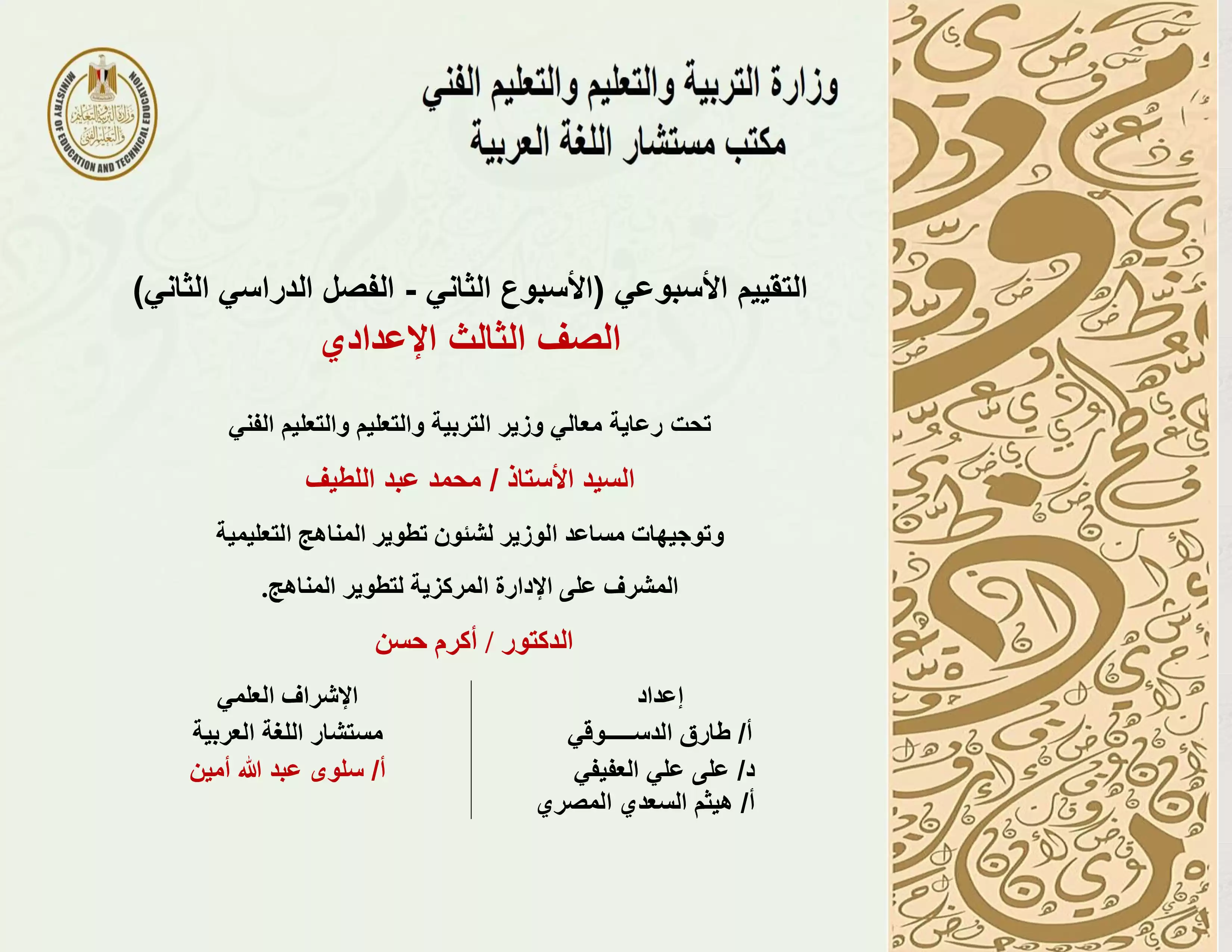 تقييمات الصف الثالث الإعدادي الأسبوعية في الترم الثاني 2025