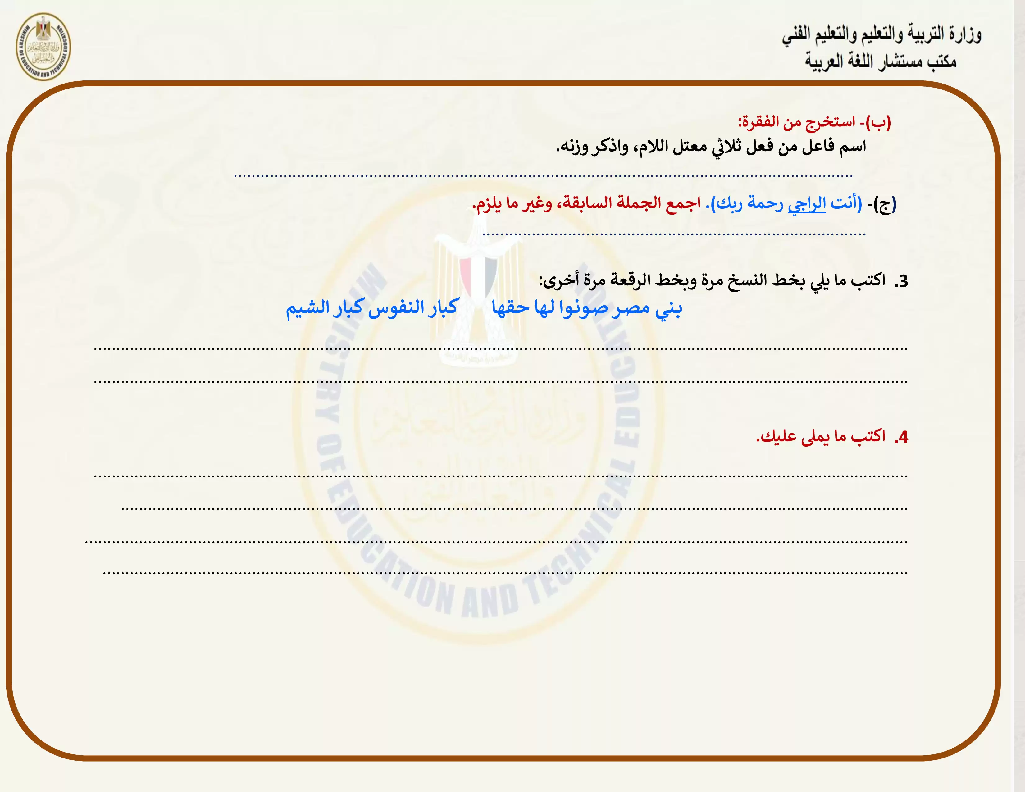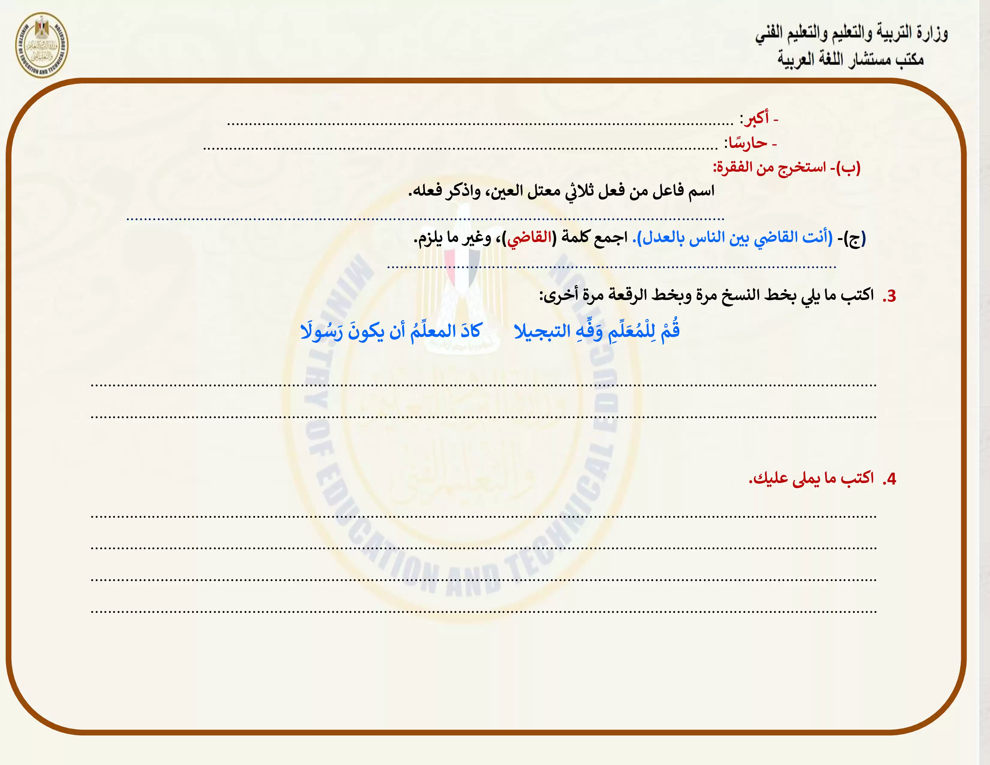 • تقييمات مادة العربي للصف الثالث الإعدادي