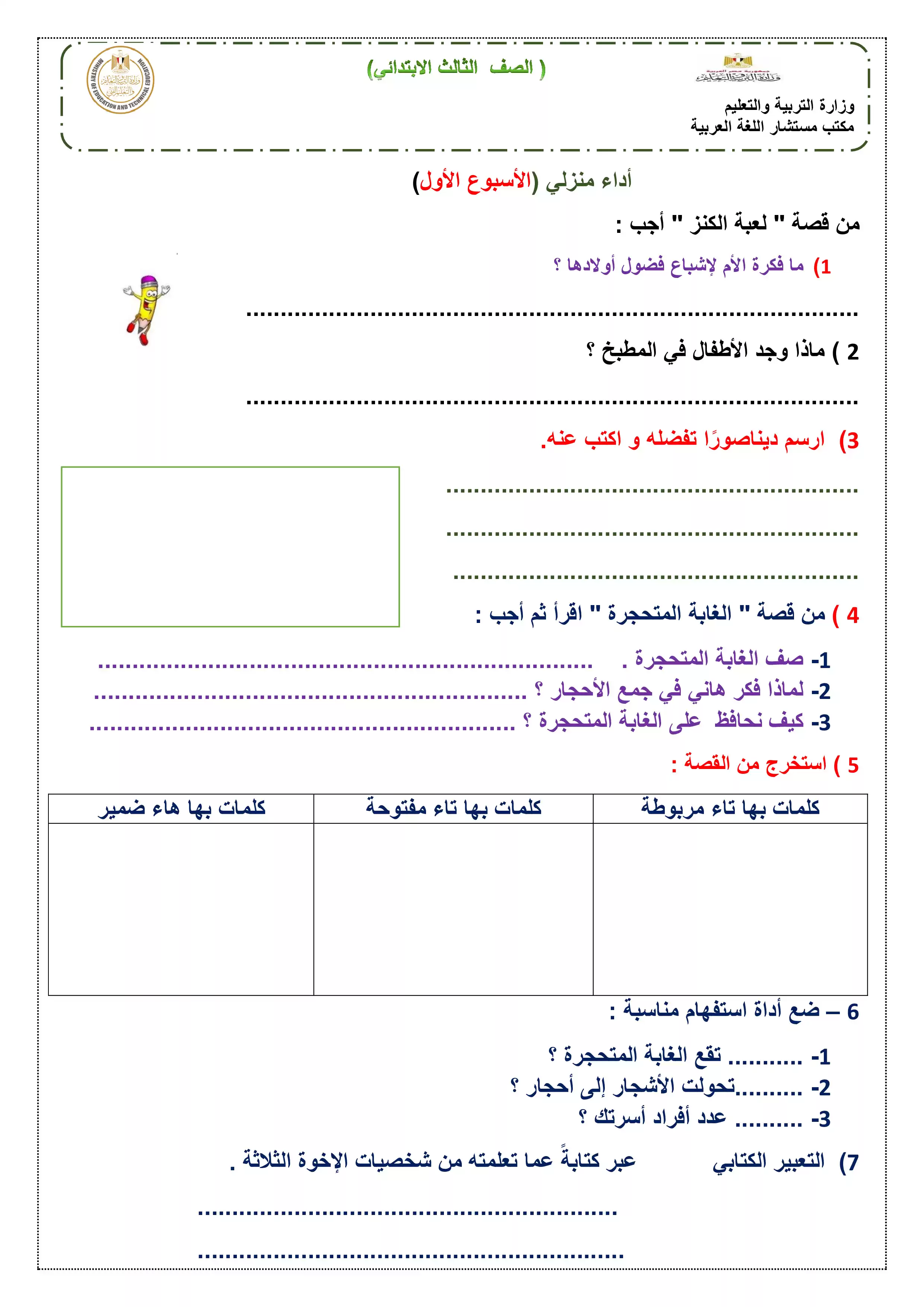 • الآداء المنزلي للصف الثالث الابتدائي في اللغة العربية