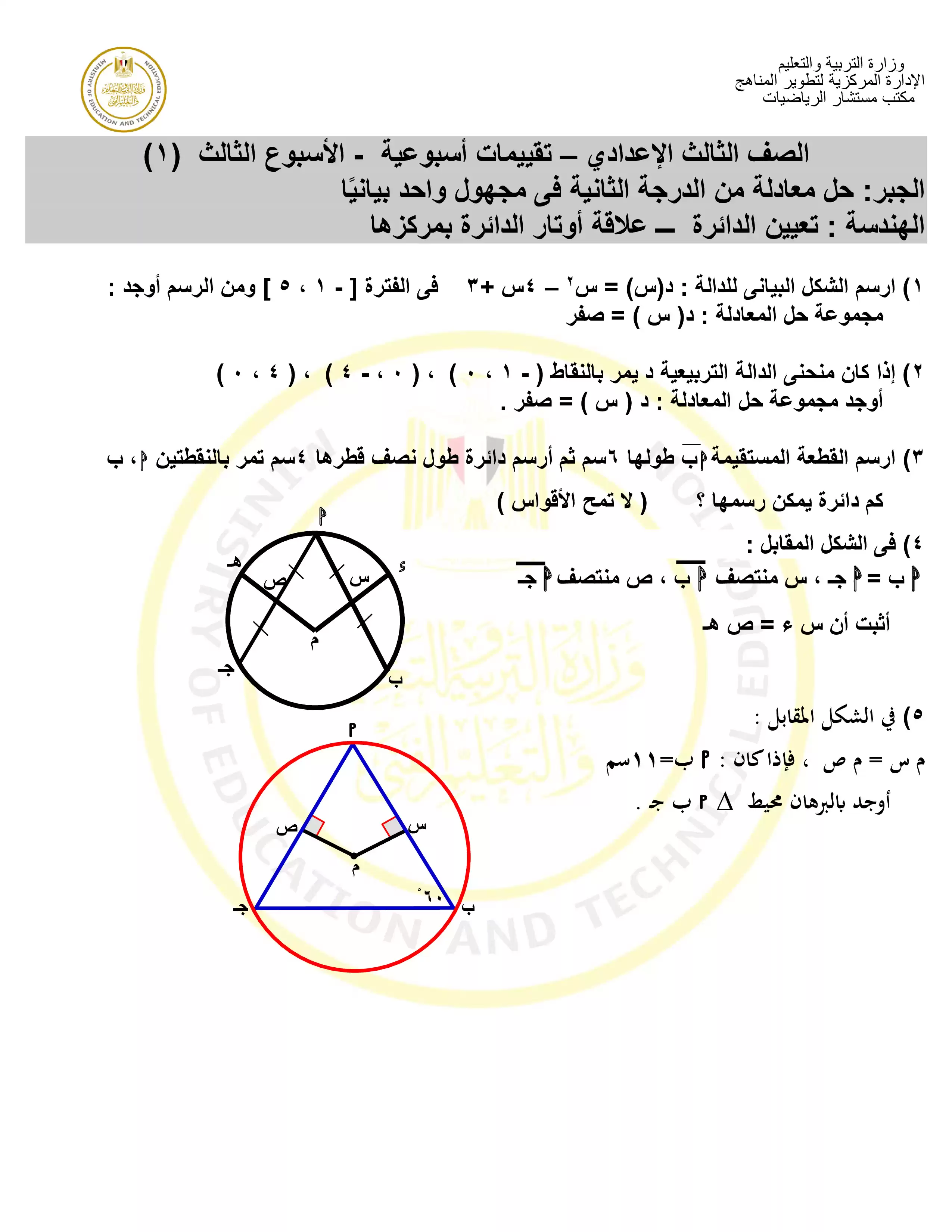 • تقييمات مادة الرياضة (جبر وهندسة) للصف الثالث الإعدادي
