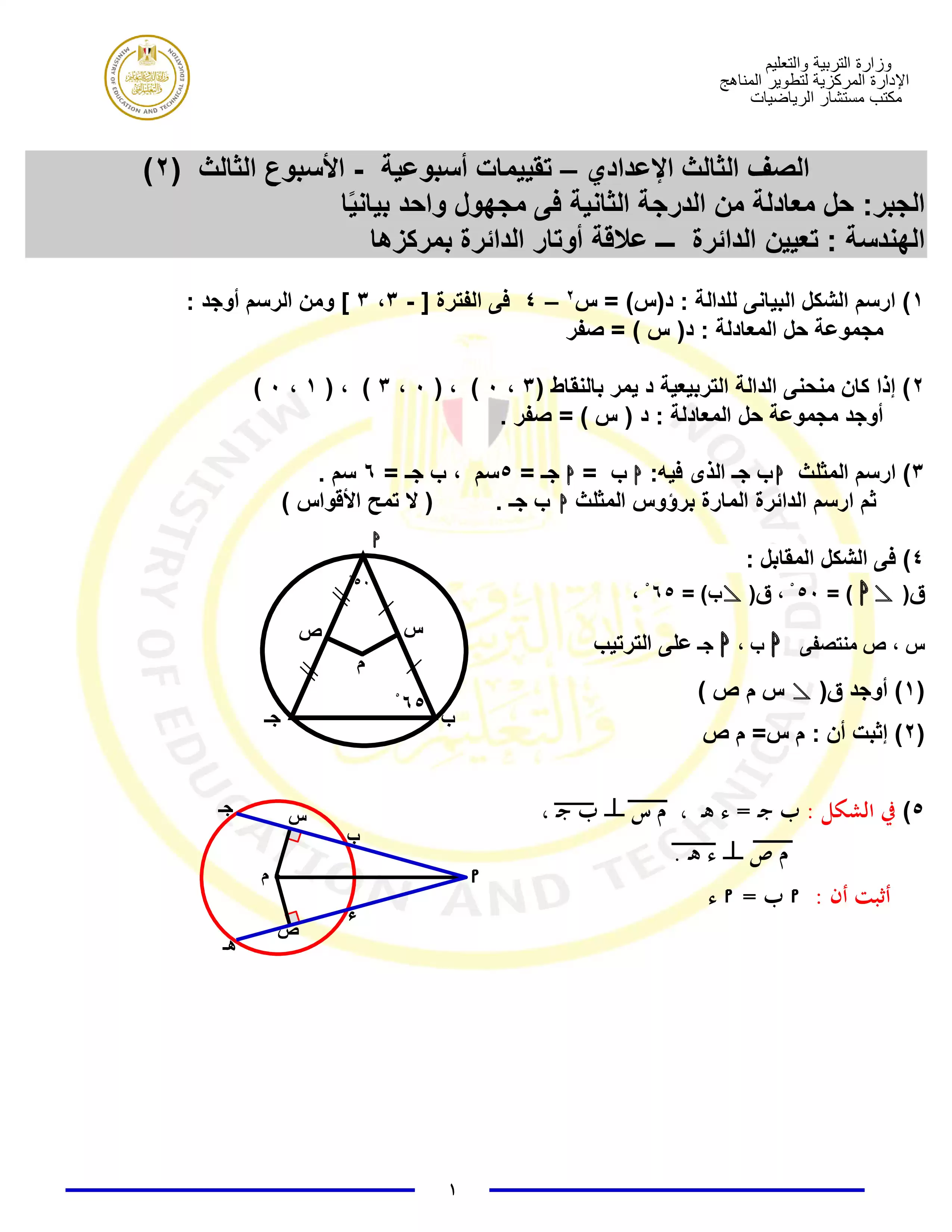 1. تقييمات الأسبوع الأول في مادة الرياضيات للصف الثالث الإعدادي الترم الثاني 2025 بصيغة PDF