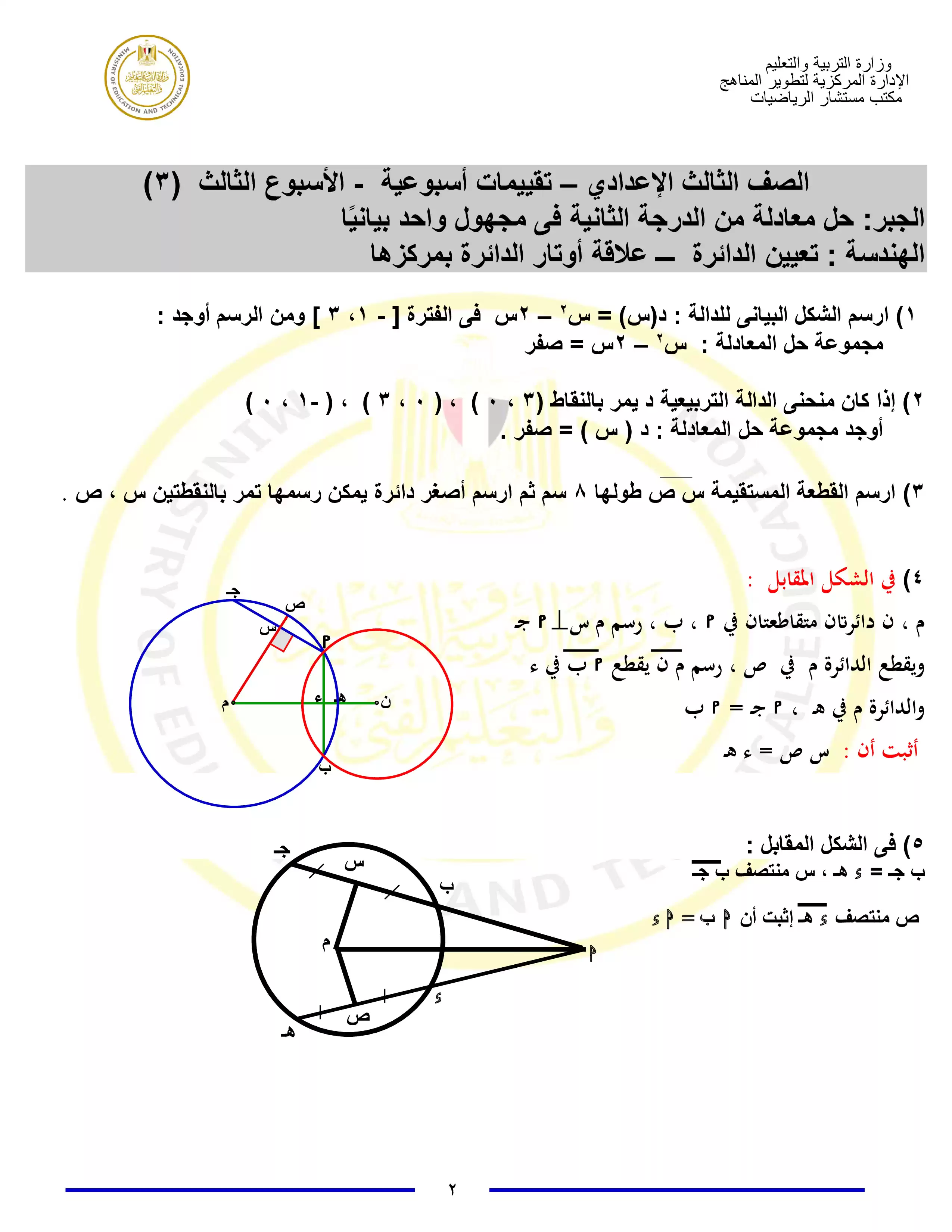 2. تقييمات الأسبوع الثاني في مادة الرياضيات للصف الثالث الإعدادي الترم الثاني 2025 بصيغة PDF