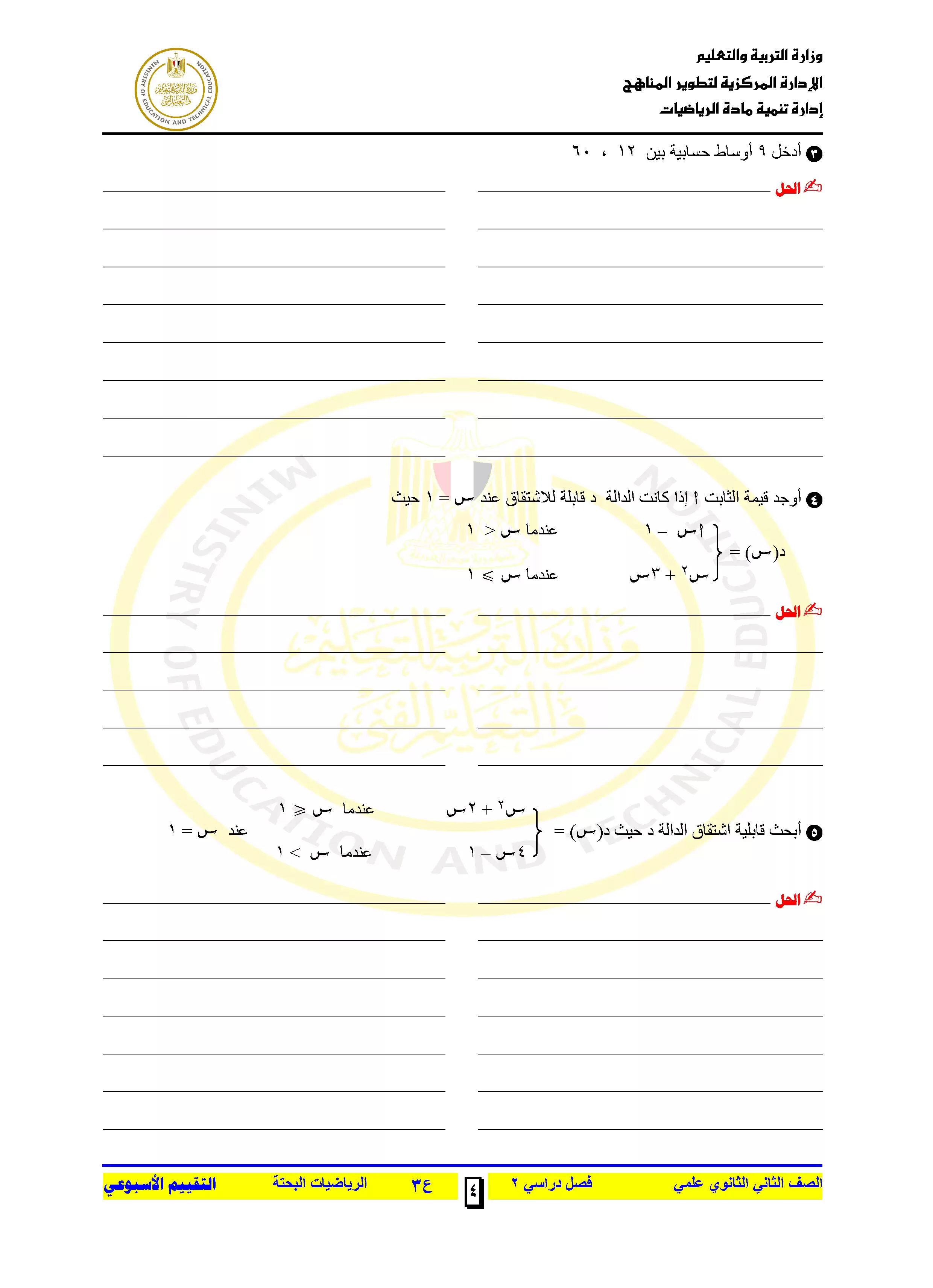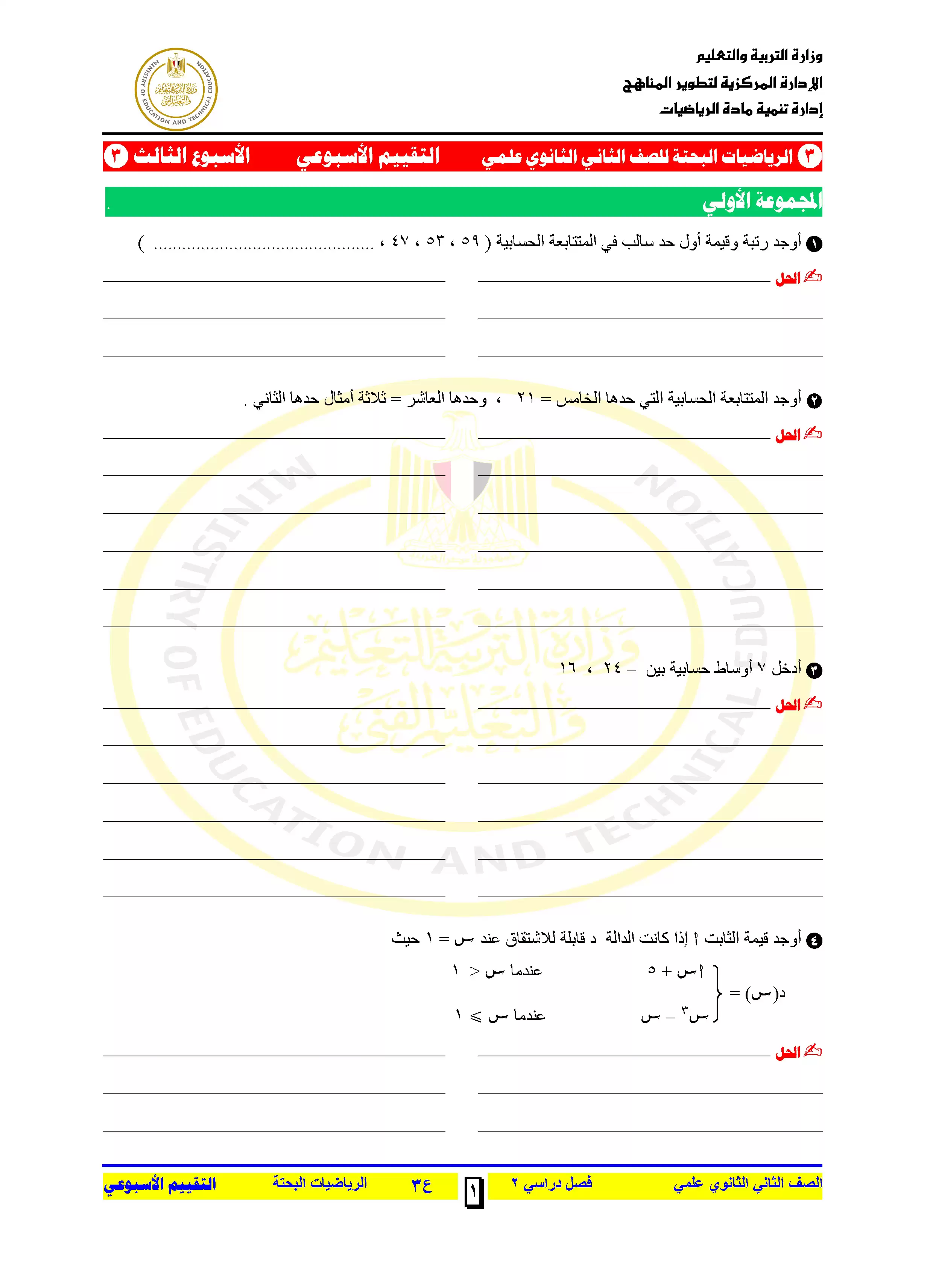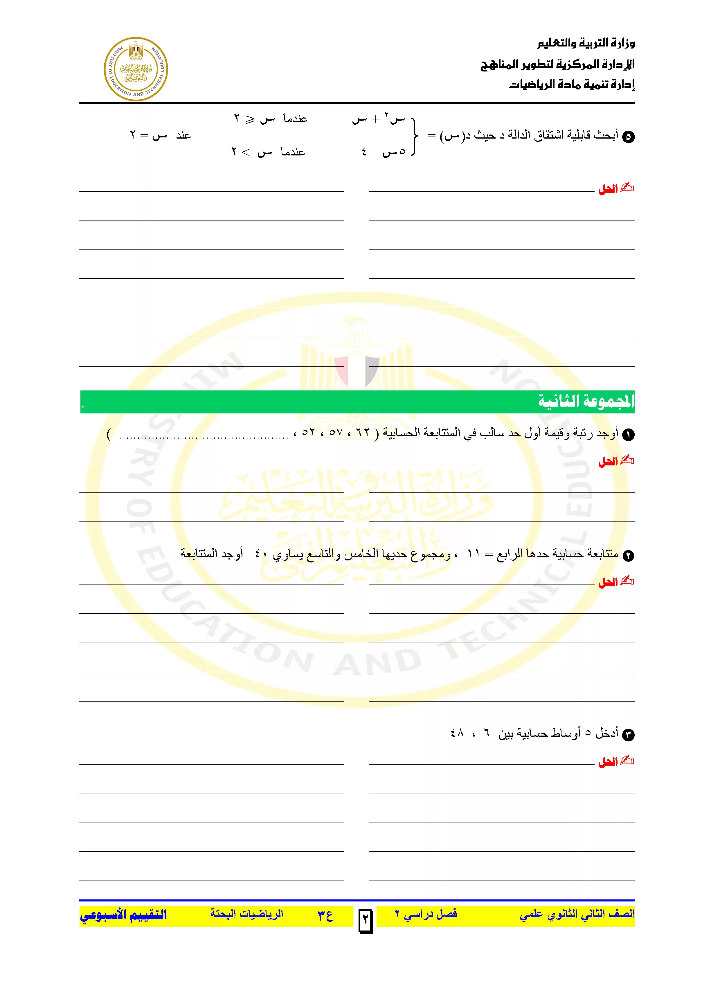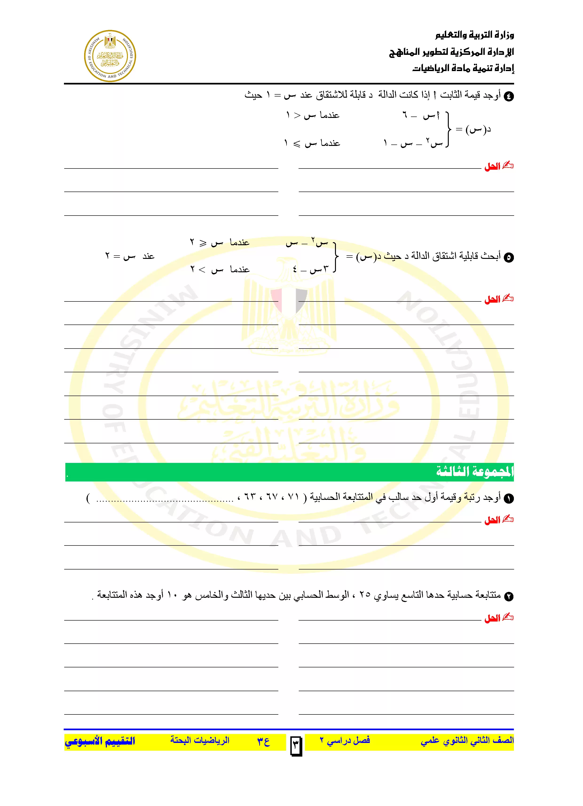 | بيانات الملف: (التقييمات الخاصة بالأسبوع الثالث في الرياضيات البحتة للصف الثاني الثانوي الترم الثاني 2025 - Nezakr) | |