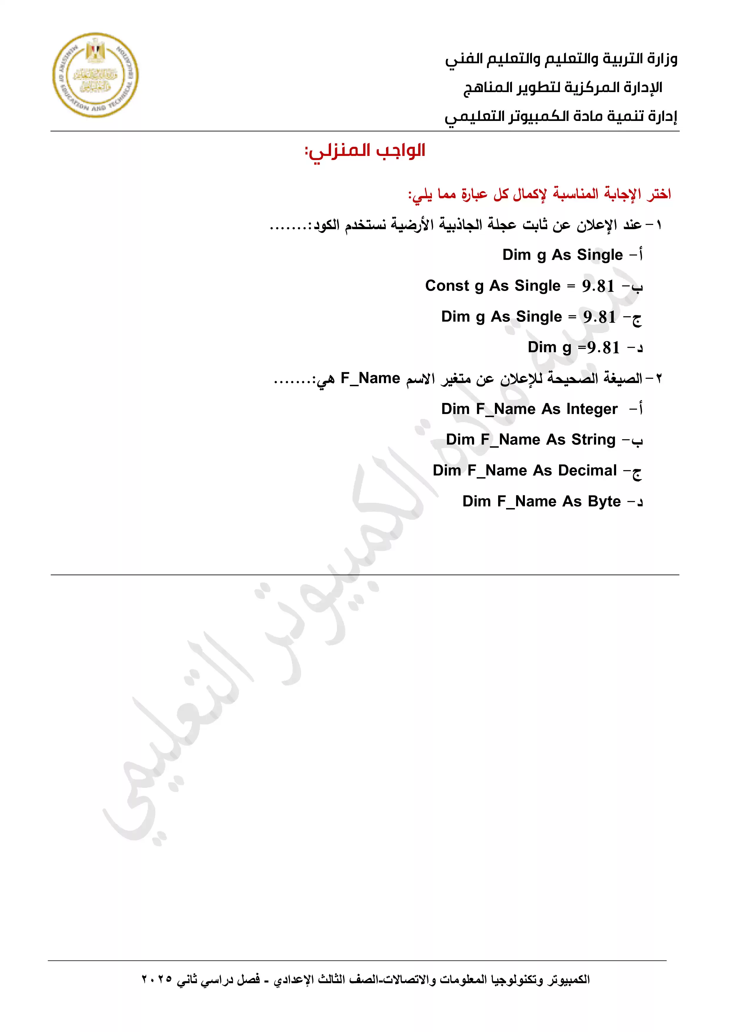 نقدم لكم المزيد من المحتوى من إعداد موقع وزارة التربية والتعليم ومقدم إلى الصف الثالث الإعدادي للإطلاع عليه أو تحميله.