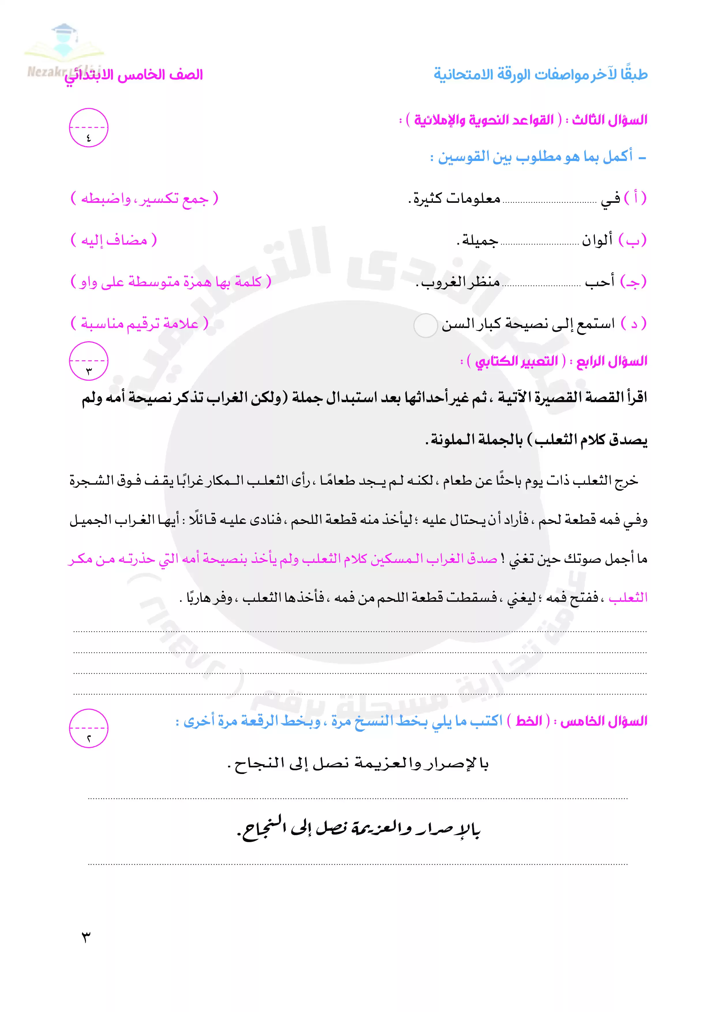 صفحة 3 من 52 صفحة من ملف: نماذج اختبارات شهر مارس للصف الخامس الابتدائى من قطر الندى واجابتها النموذجية