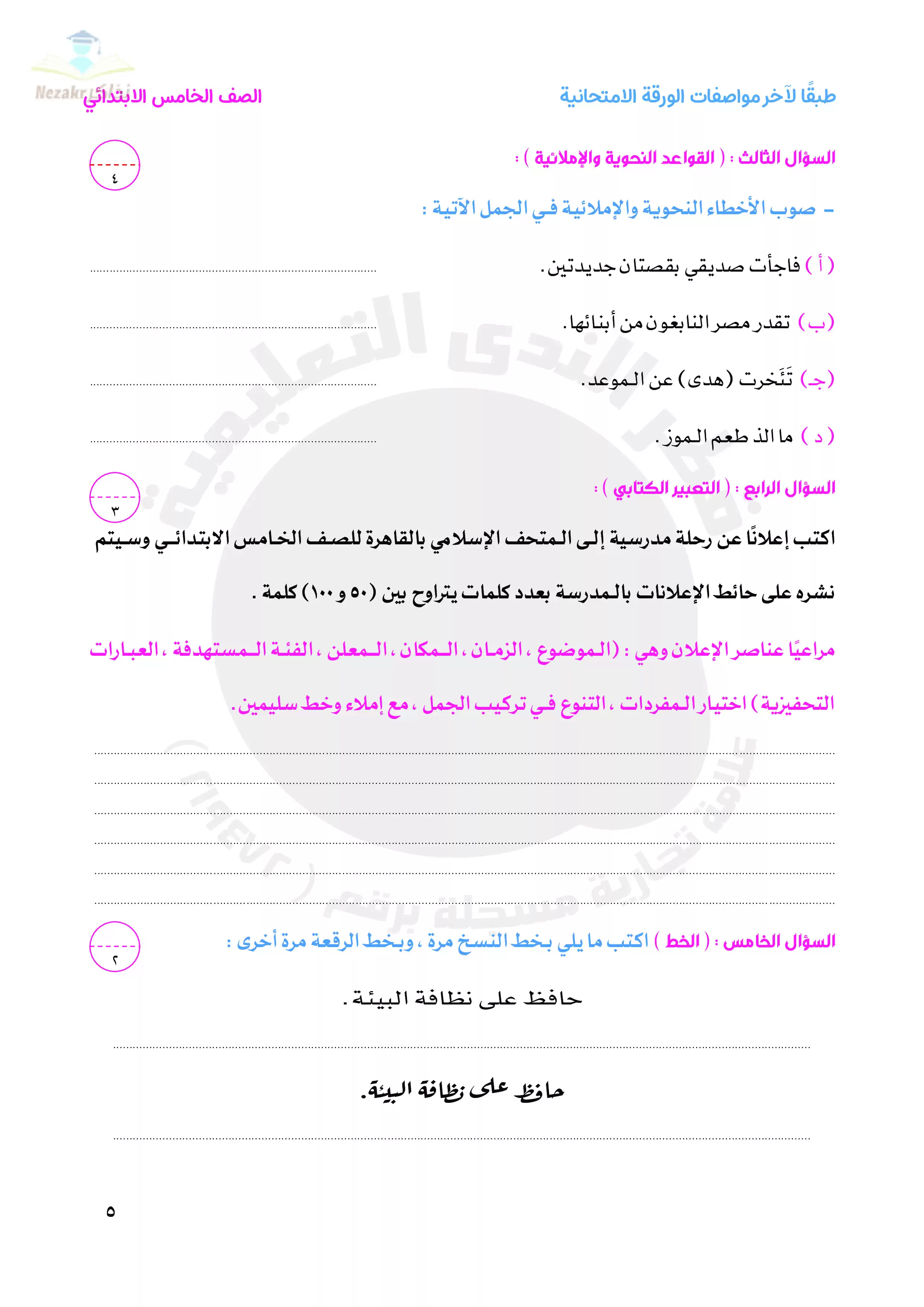 • المحتوى المضاف مؤخراً إلى قسم الصف الخامس الإبتدائي