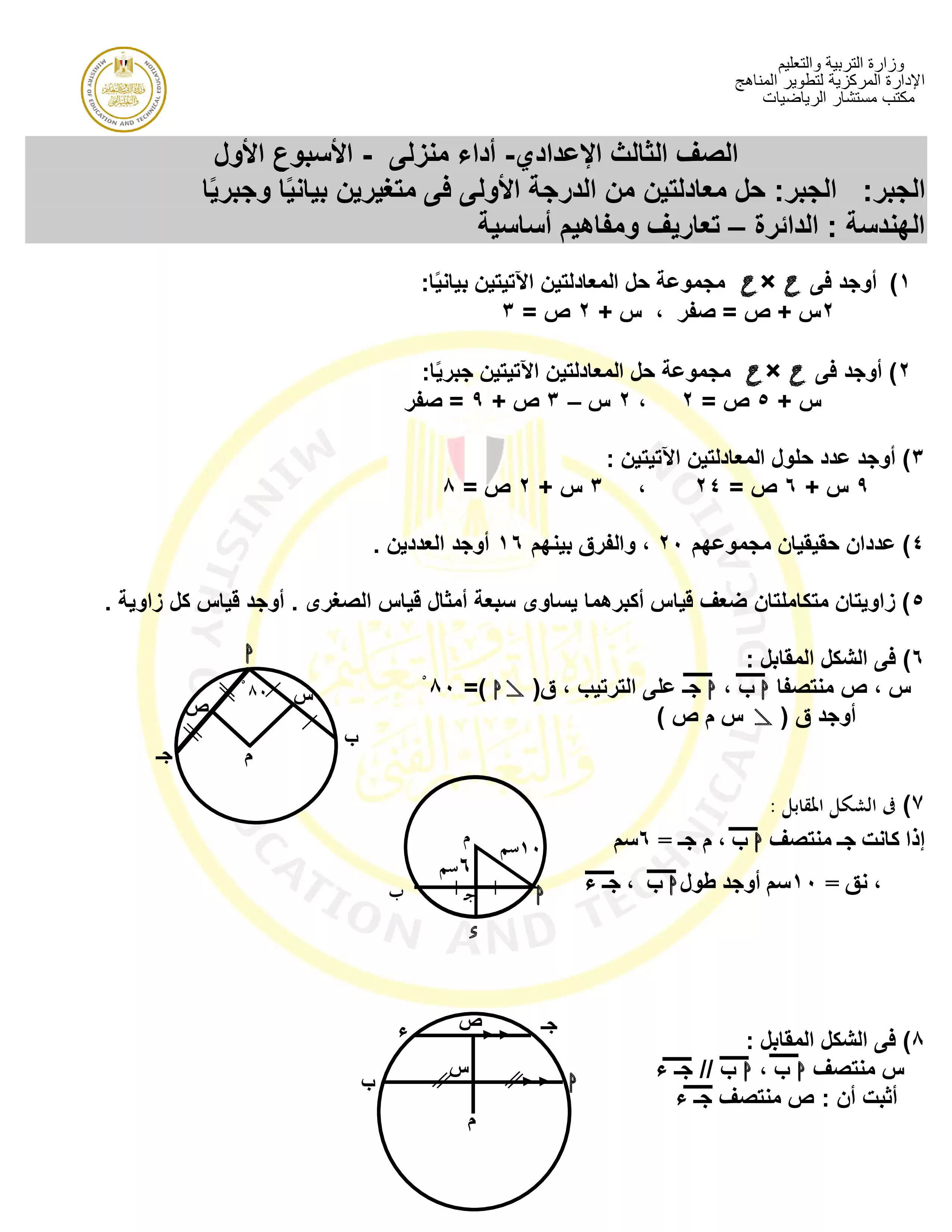 الصف الثالث الإعدادي > الرياضيات > الأداء المنزلي في الأسبوع الأول مادة الرياضيات للصف الثالث الاعدادي الترم الثاني 2025 بصيغة PDF