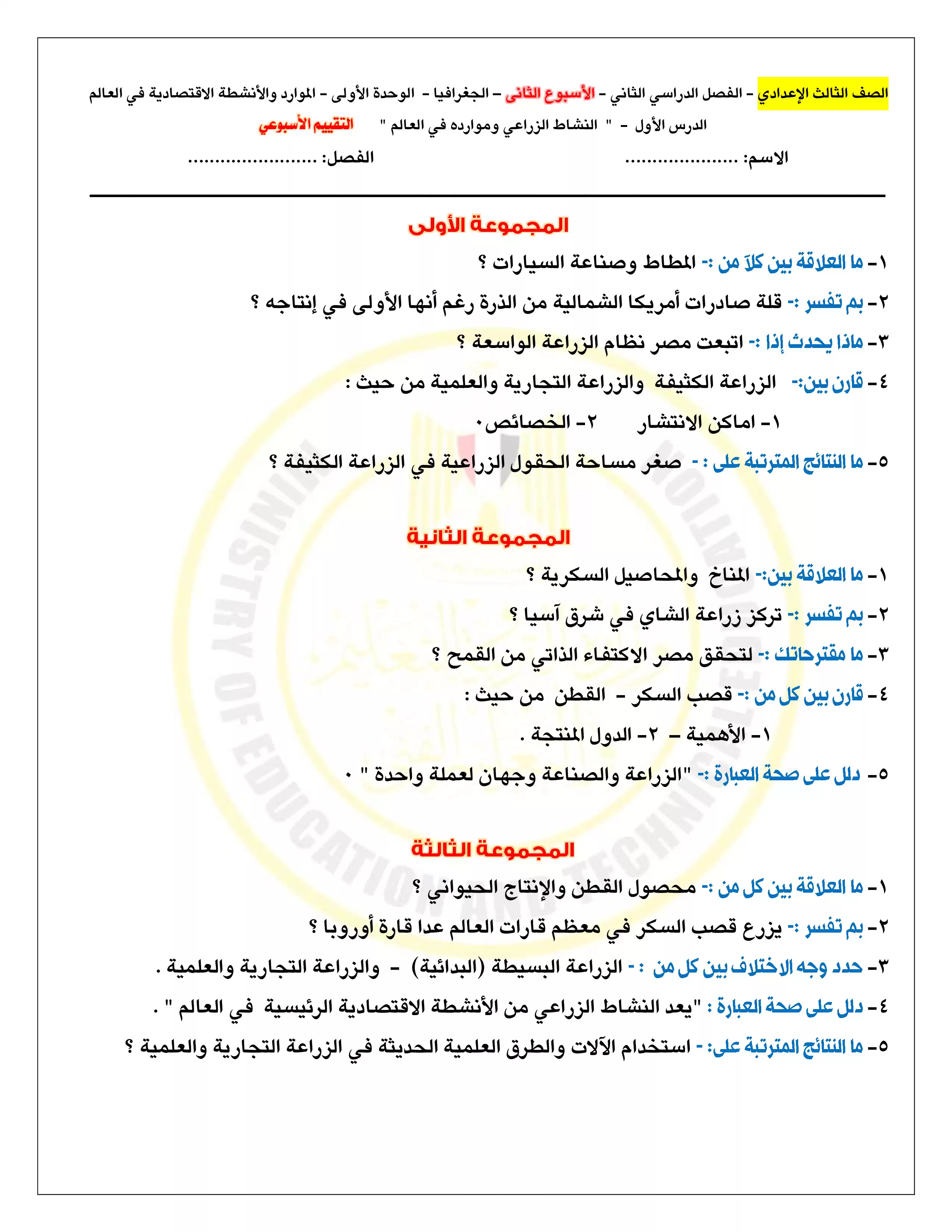 نقدم لكم المزيد من المحتوى من إعداد موقع وزارة التربية والتعليم ومقدم إلى الصف الثالث الإعدادي للإطلاع عليه أو تحميله.