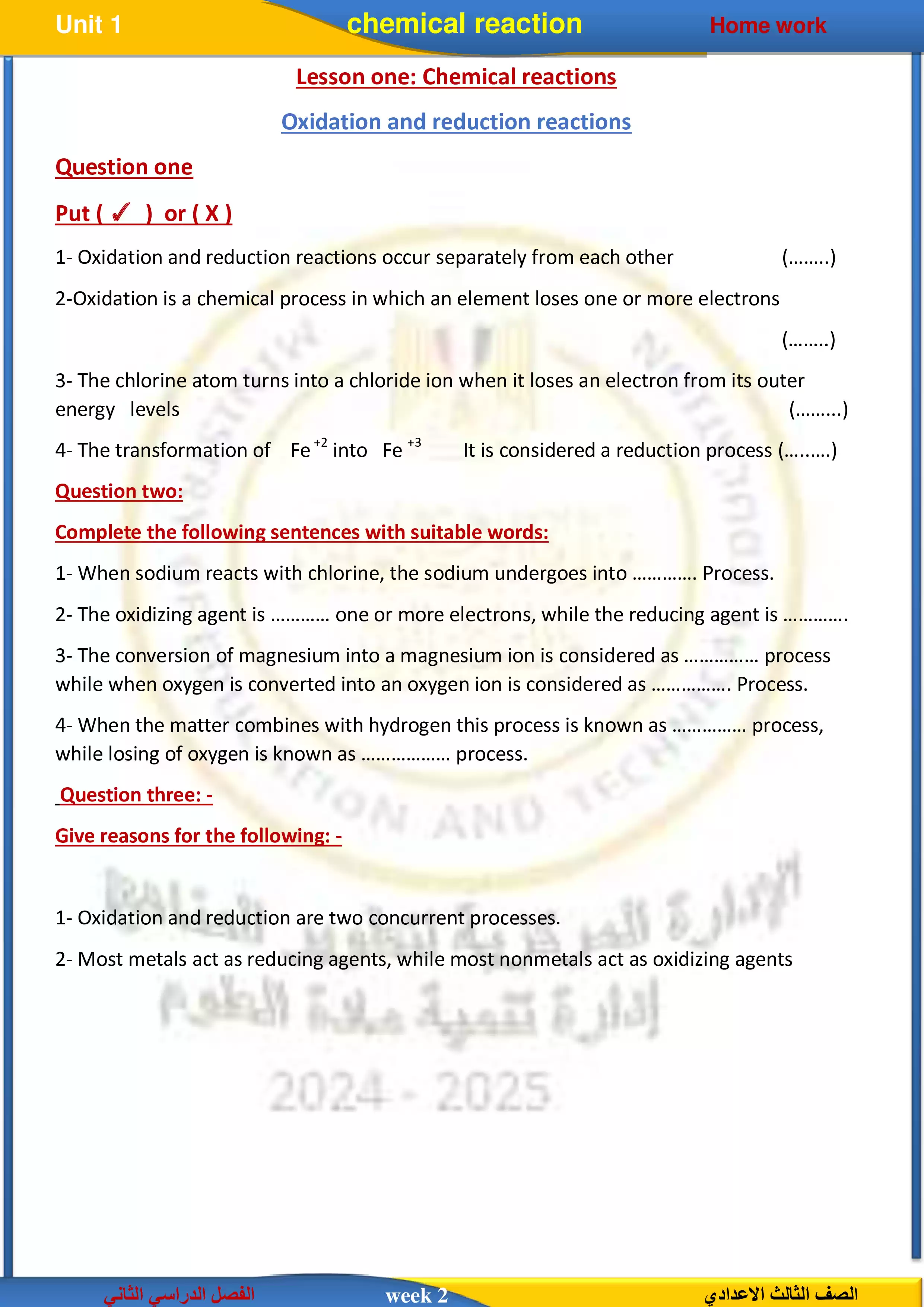 يحتوي الملف المرفق على الواجب المنزلي الخاص بالأسبوع الثالث في مادة الساينس Science للصف الثالث الاعدادي الترم الثاني 2025، وهو بصيغة PDF وبجودة عالية متاح للتحميل والتصفح مجاناً من موقع نذاكر.
