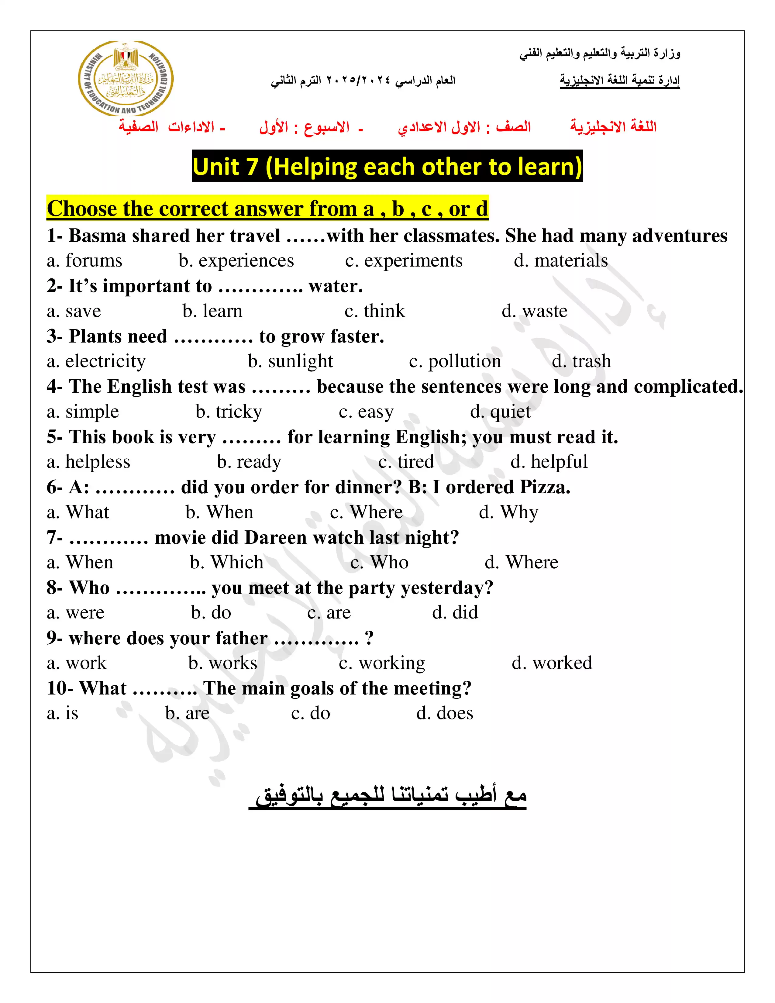 نقدم لكم المزيد من المحتوى من إعداد موقع وزارة التربية والتعليم ومقدم إلى الصف الأول الإعدادي للإطلاع عليه أو تحميله.