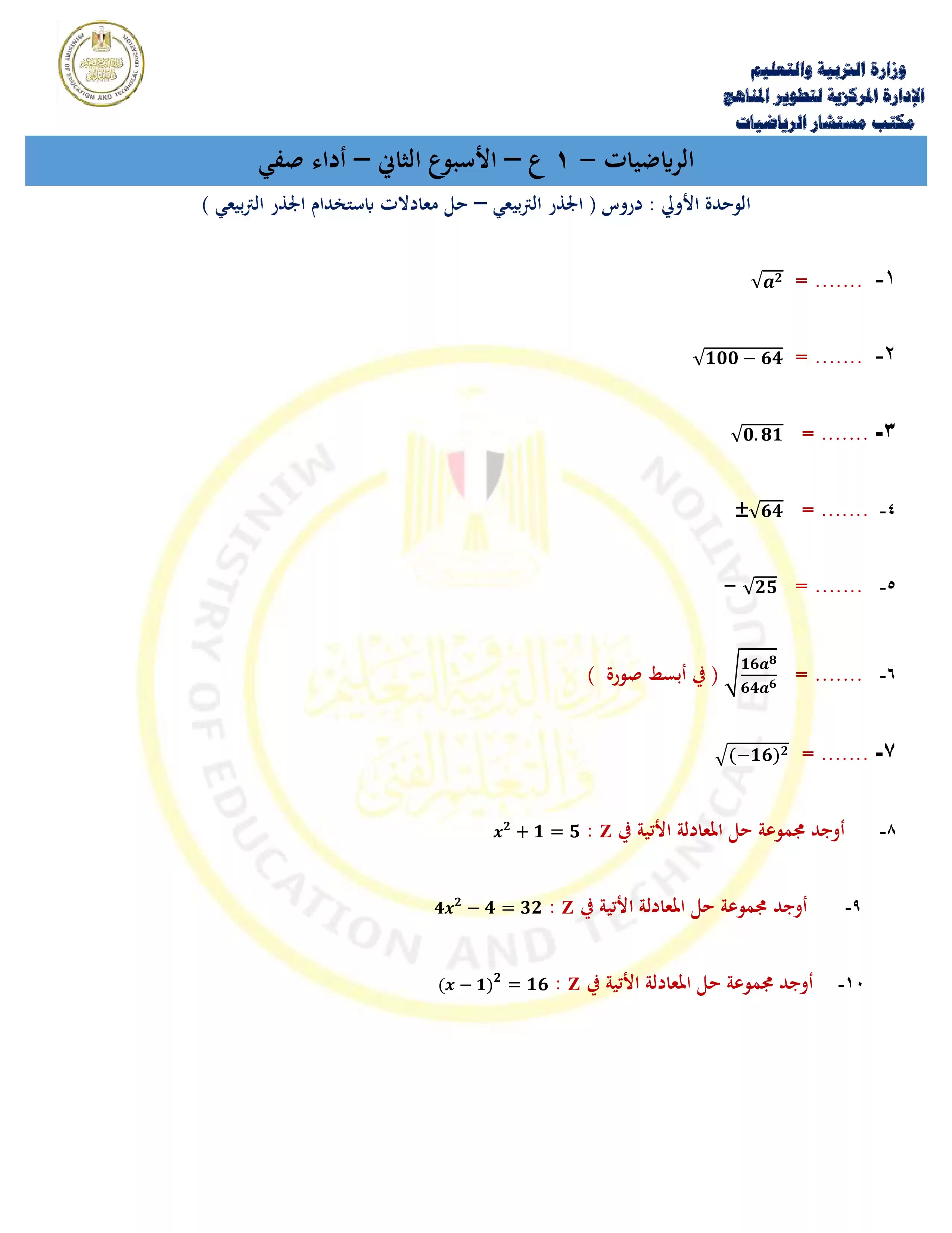 الصف الأول الإعدادي > الرياضيات > الآداء الصفي في الأسبوع الثاني مادة الرياضيات للصف الأول الإعدادي الترم الثاني 2025 بصيغة PDF