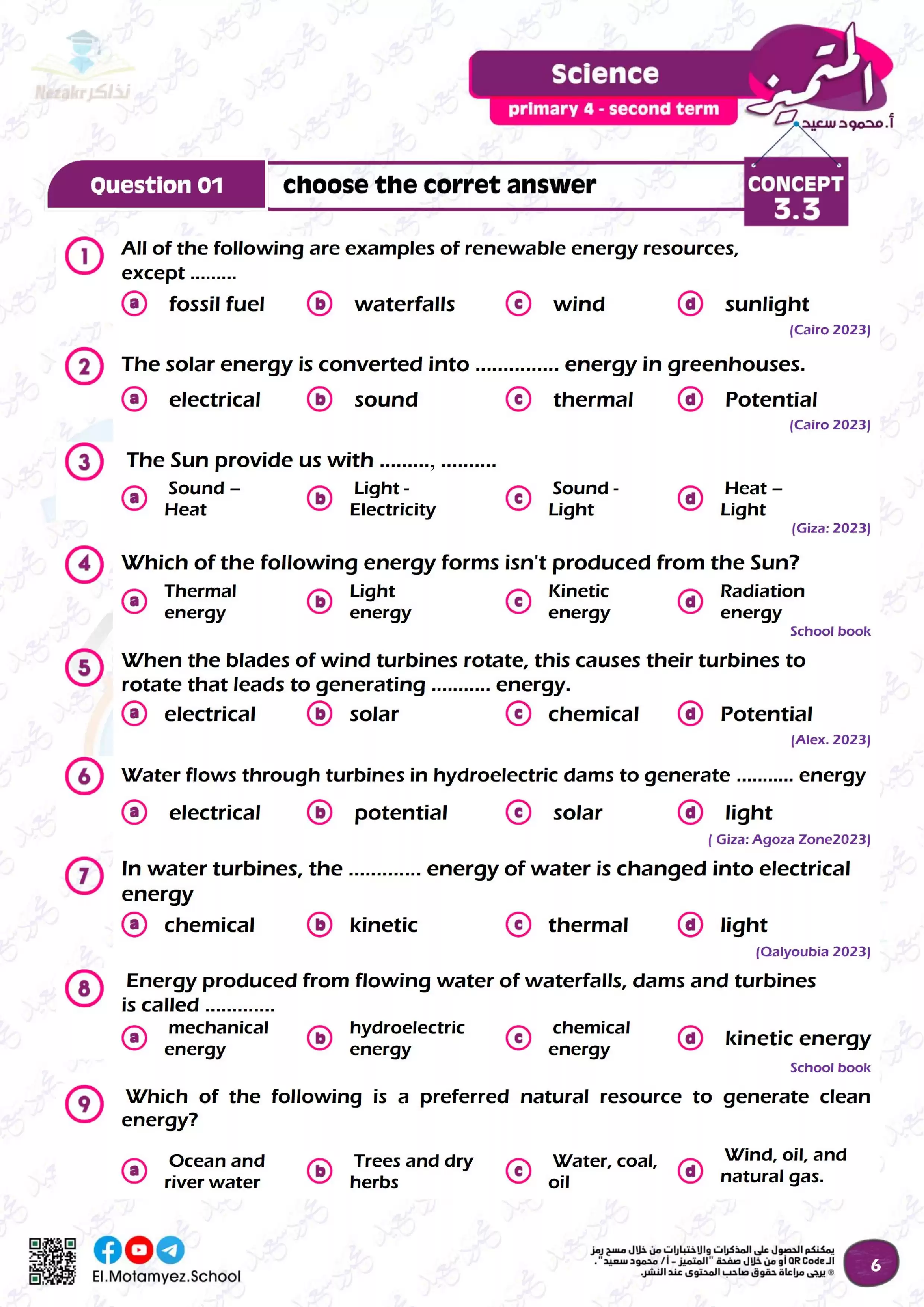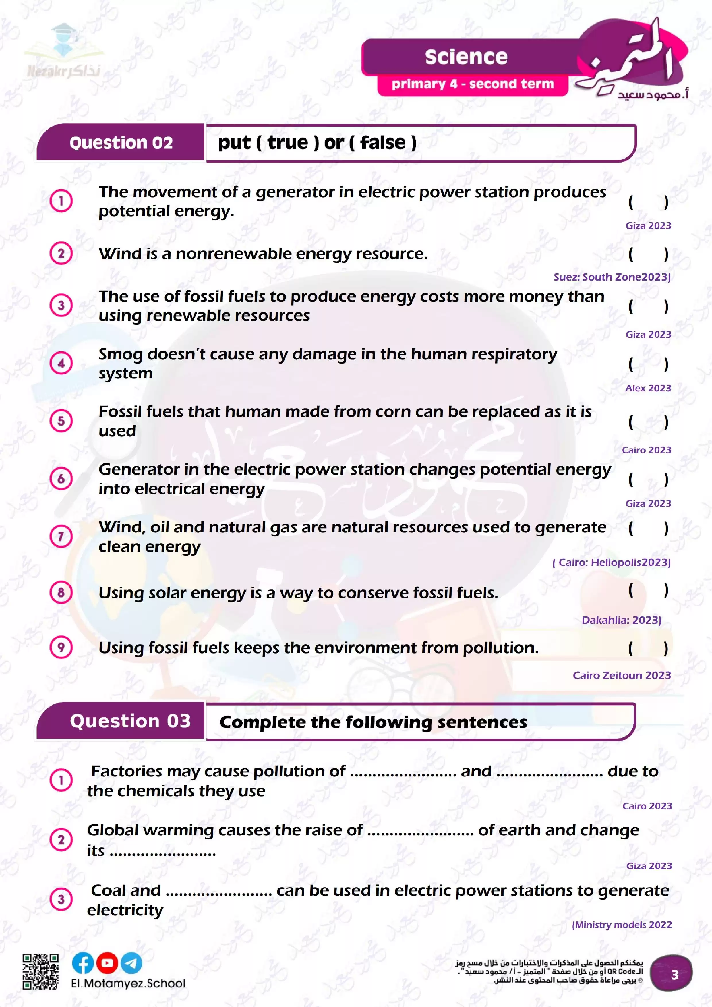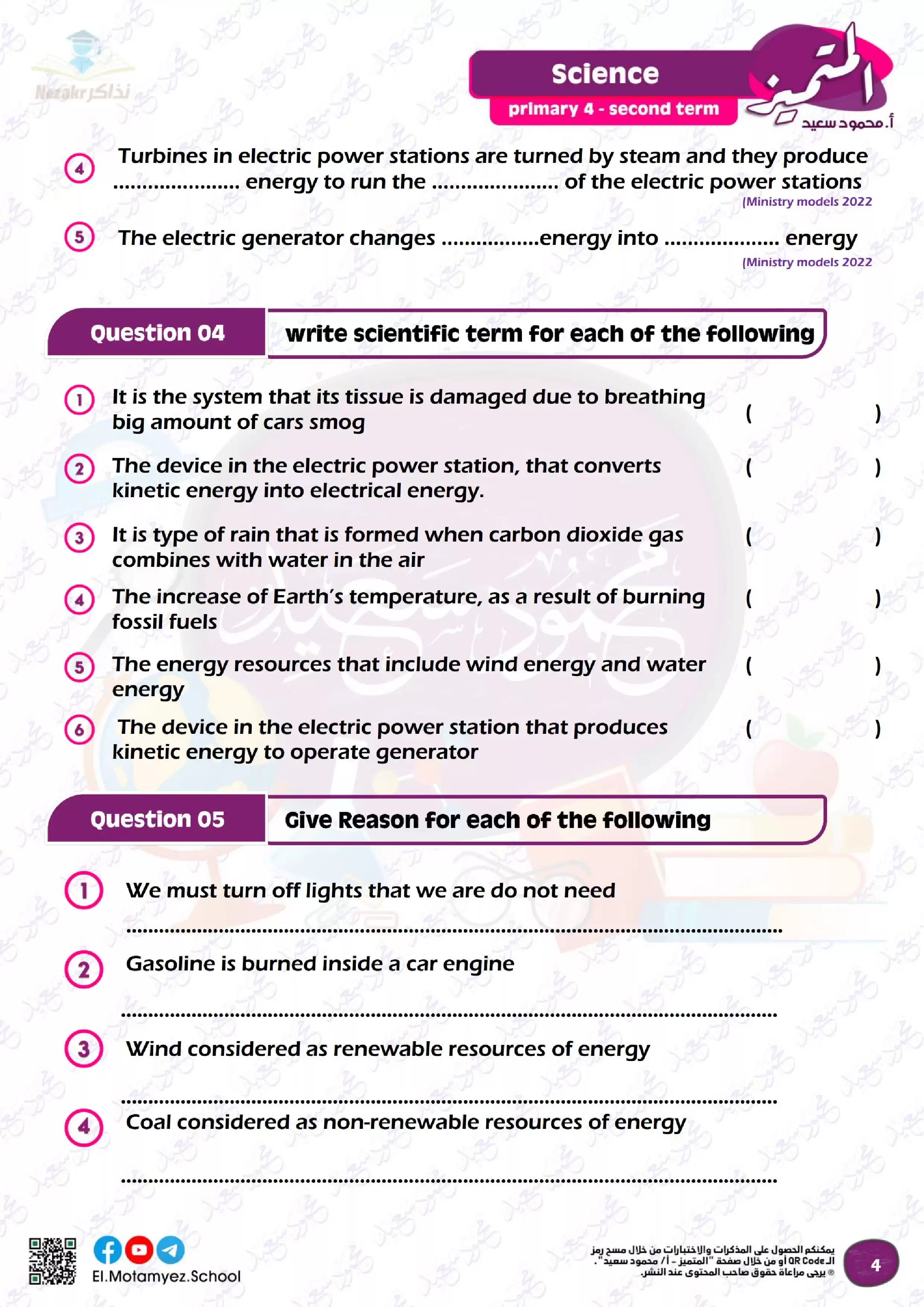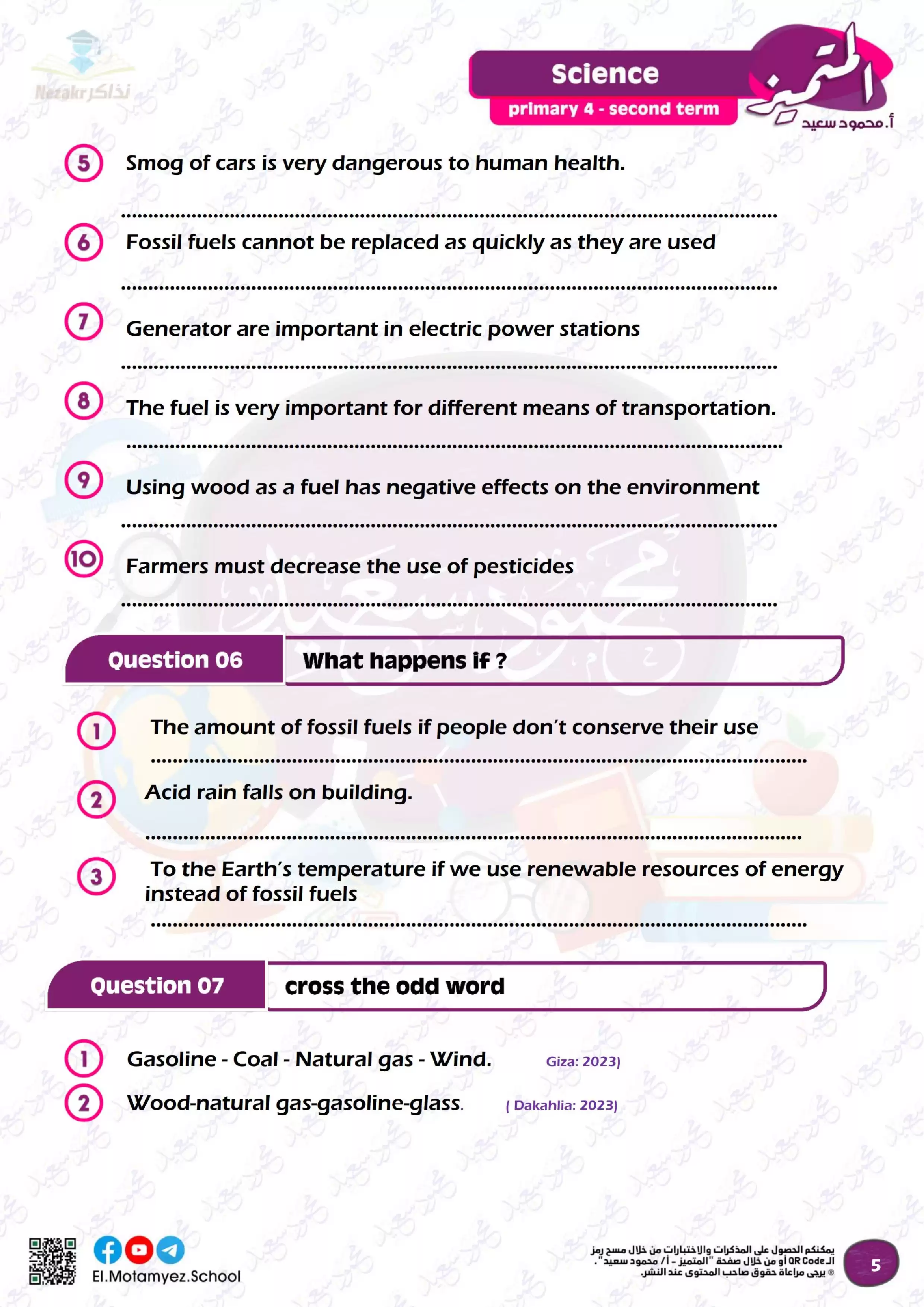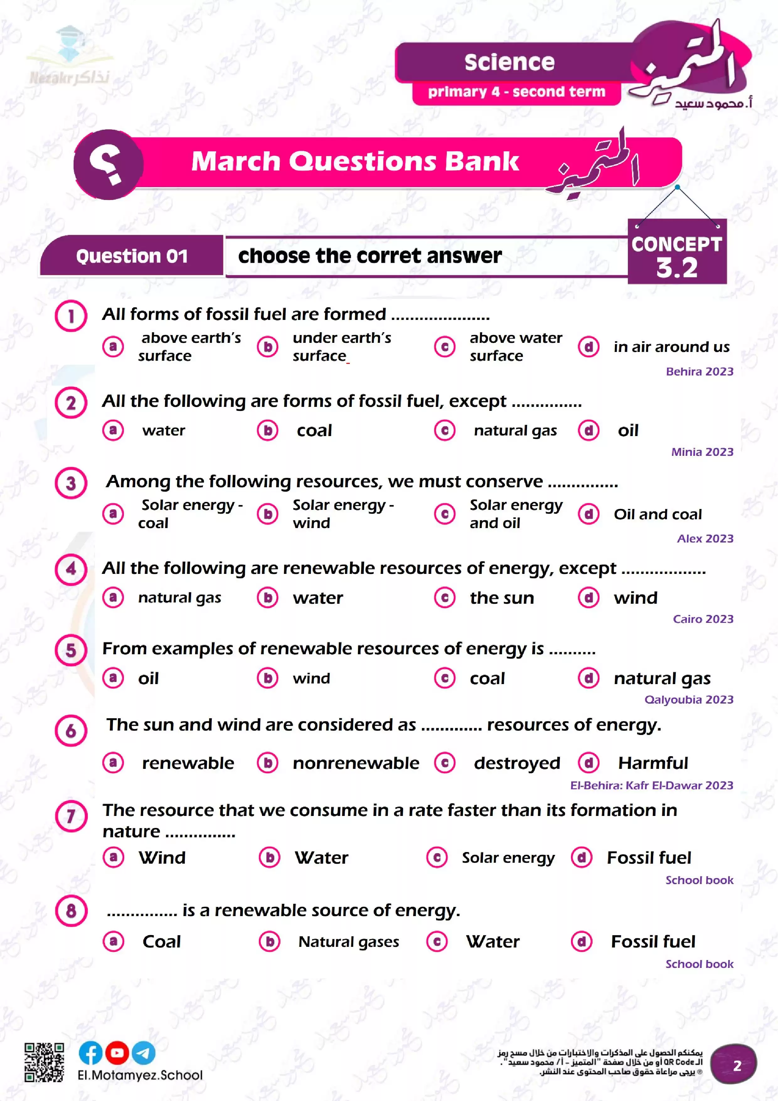 بيانات الملف: (مراجعة وبنك أسئلة منهج شهر مارس من المتميز في مادة science للصف الرابع الابتدائي)