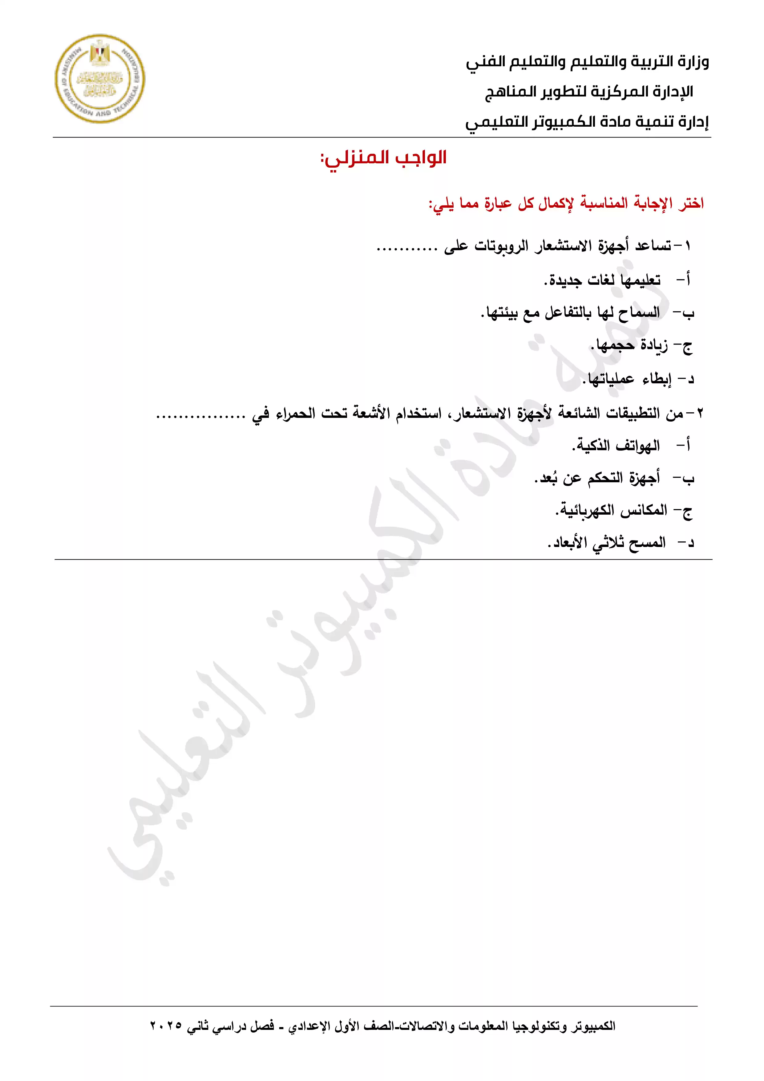 نقدم لكم المزيد من المحتوى من إعداد موقع وزارة التربية والتعليم ومقدم إلى الصف الأول الإعدادي للإطلاع عليه أو تحميله.