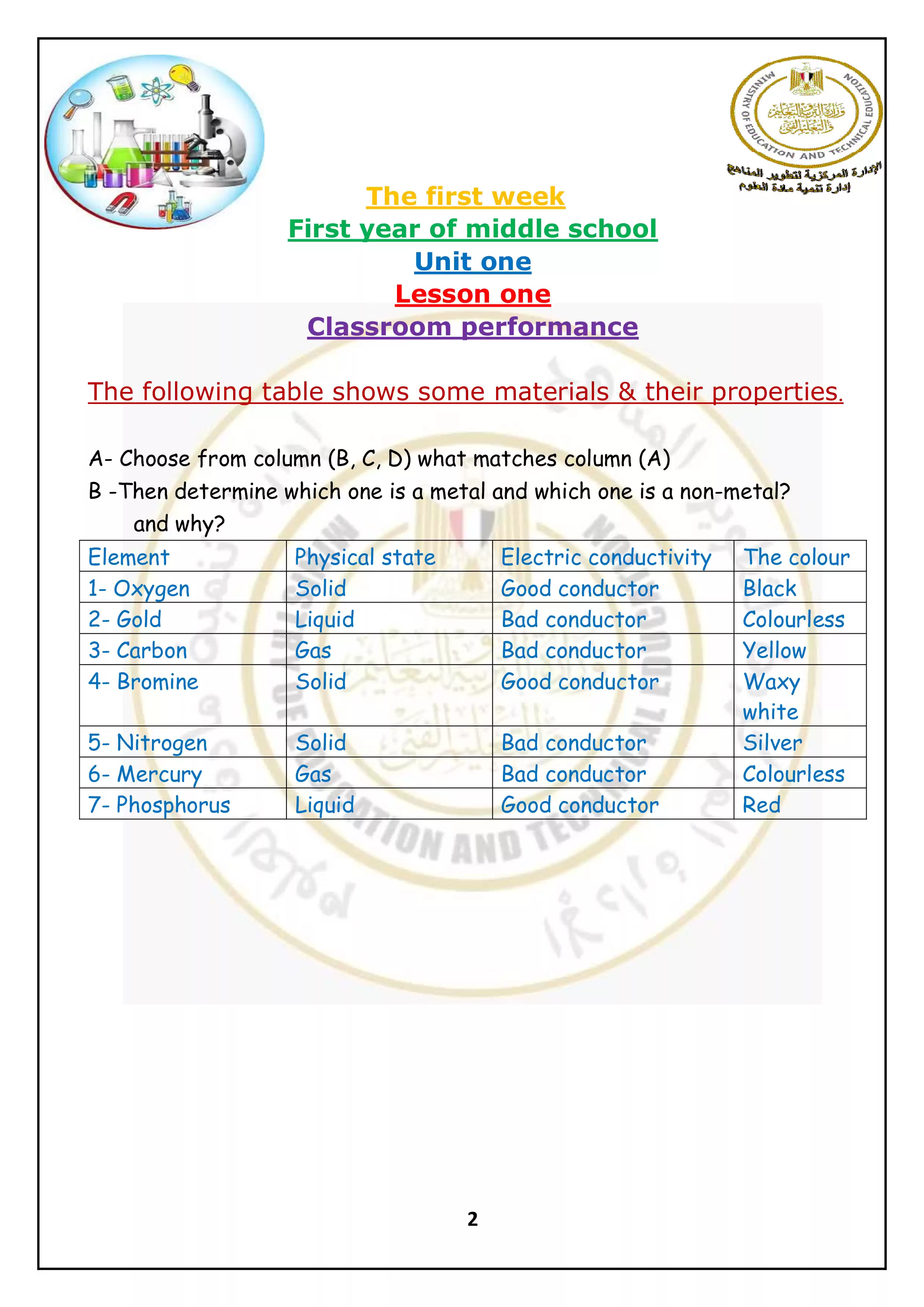 | بيانات الملف: (الآداءات الصفية للأسبوع الأول في الساينس للصف الاول الإعدادي الترم الثاني 2025) | |