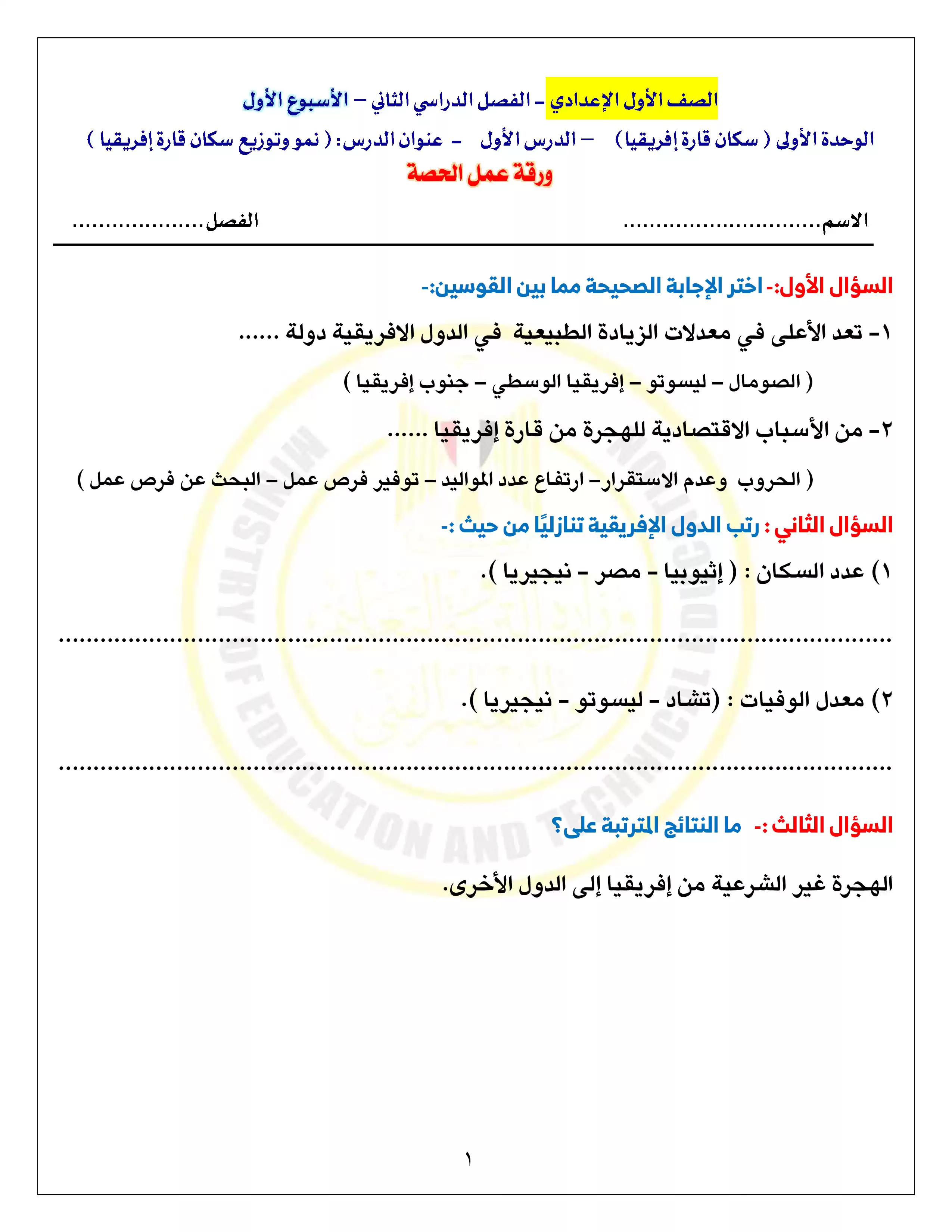 نقدم لكم المزيد من المحتوى من إعداد موقع وزارة التربية والتعليم ومقدم إلى الصف الأول الإعدادي للإطلاع عليه أو تحميله.