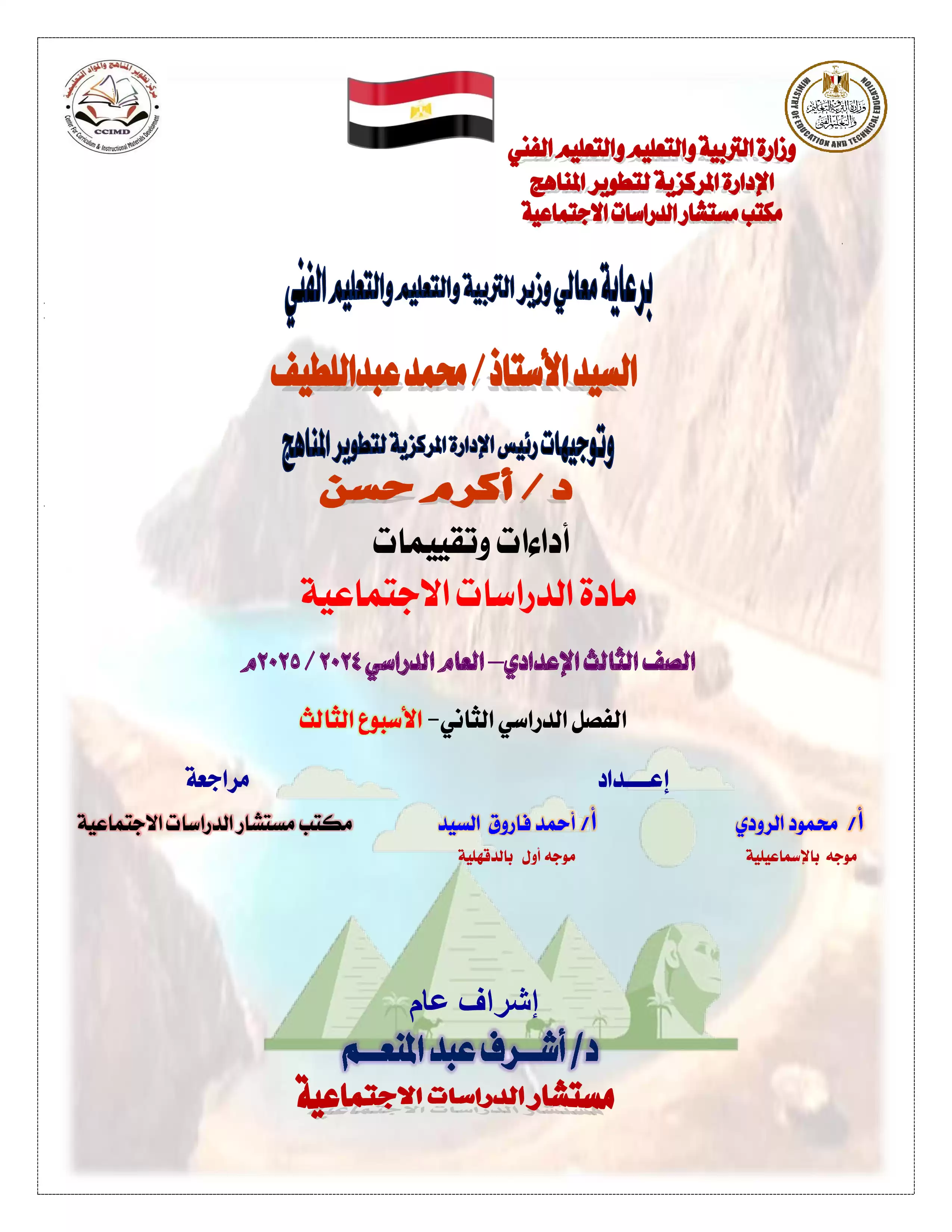 | بيانات الملف: (التقييمات الخاصة بالأسبوع الثالث في الدراسات الاجتماعية للصف الثالث الاعدادي الترم الثاني 2025 - Nezakr) | |