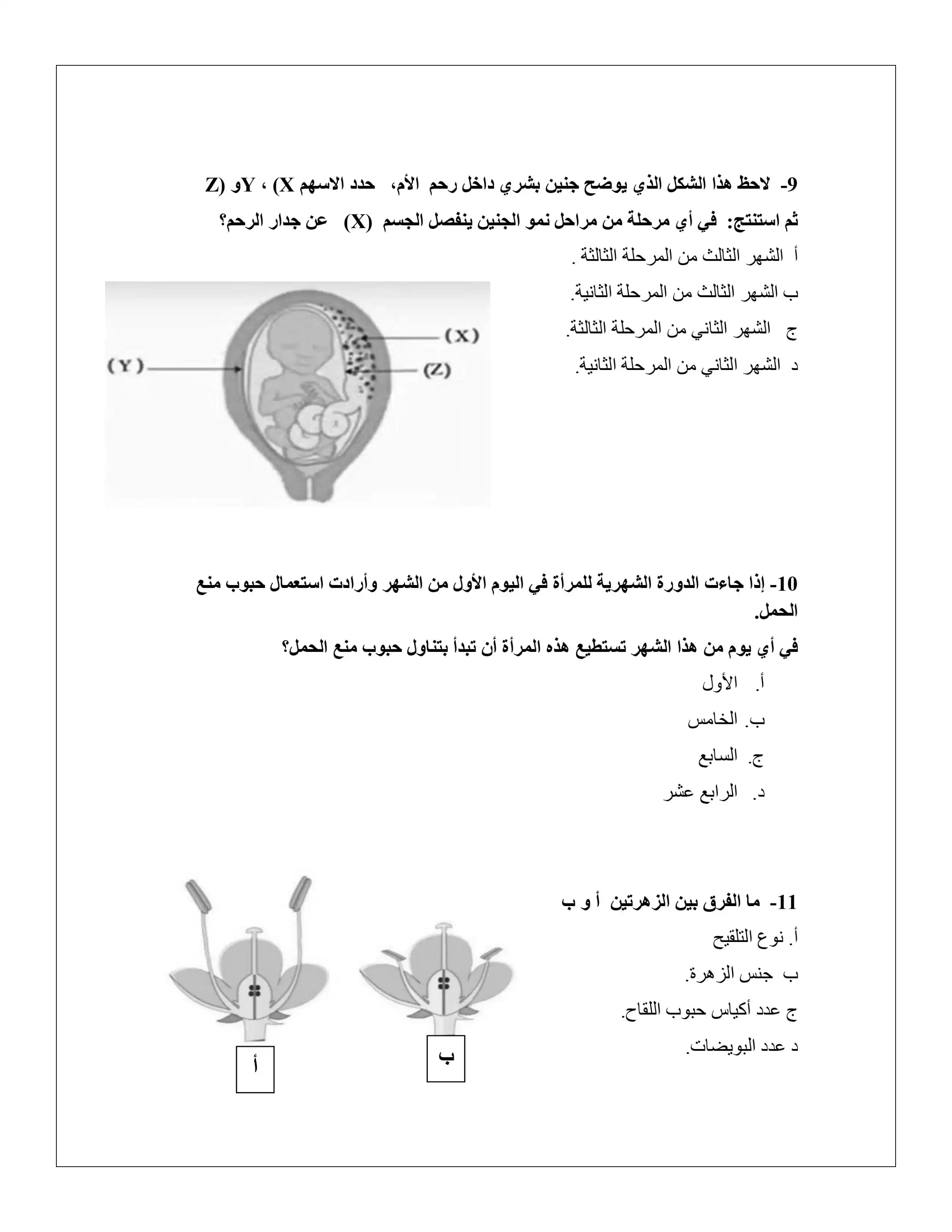 امتحان الأحياء التجريبي الأول للثانوية العامة 2025