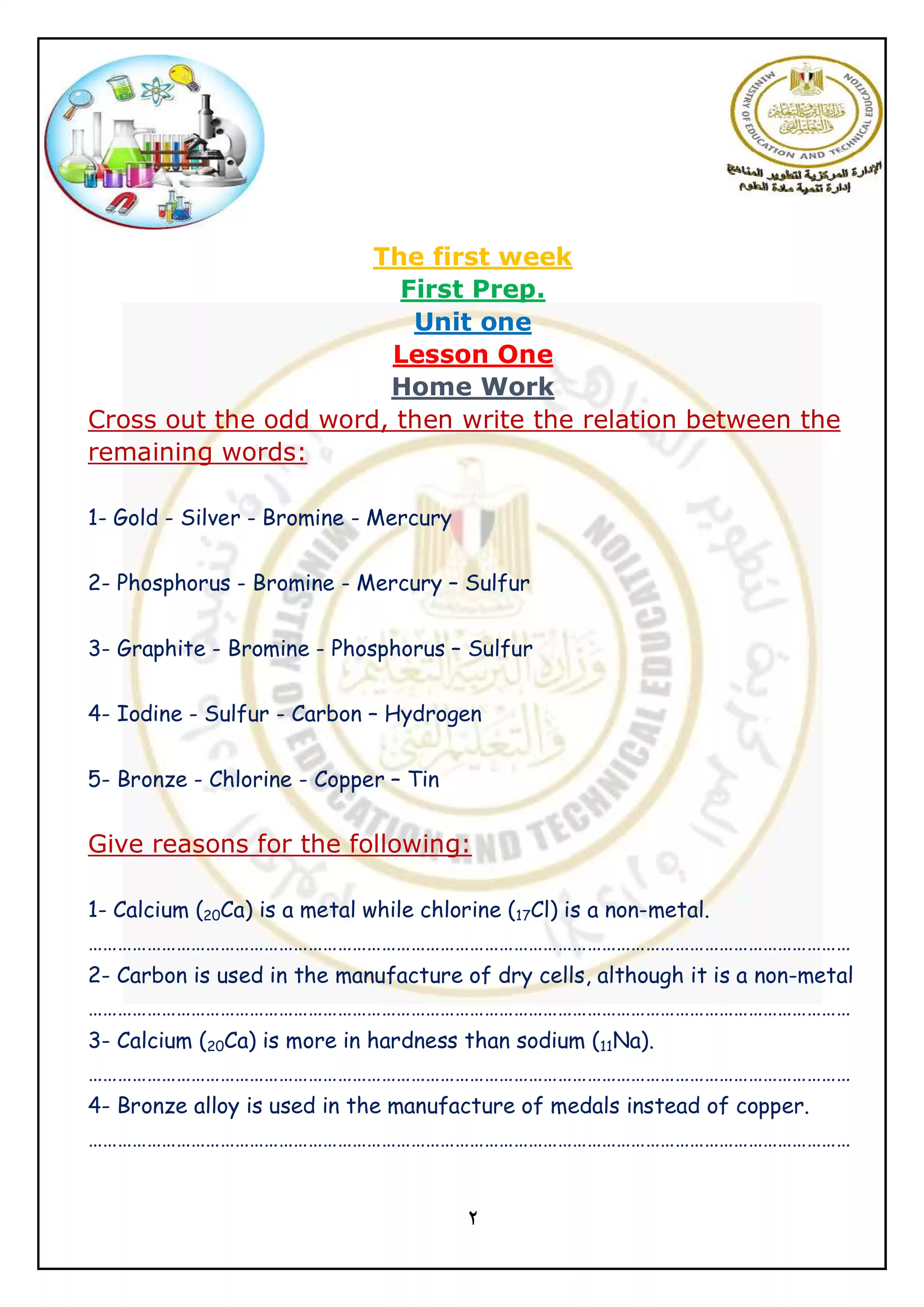 يحتوي الملف المرفق على الواجب المنزلي الخاص بالأسبوع الاول في مادة العلوم باللغة الإنجليزية Science للصف الأول الاعدادي الترم الثاني 2025، وهو بصيغة PDF وبجودة عالية متاح للتحميل والتصفح مجاناً من موقع نذاكر.