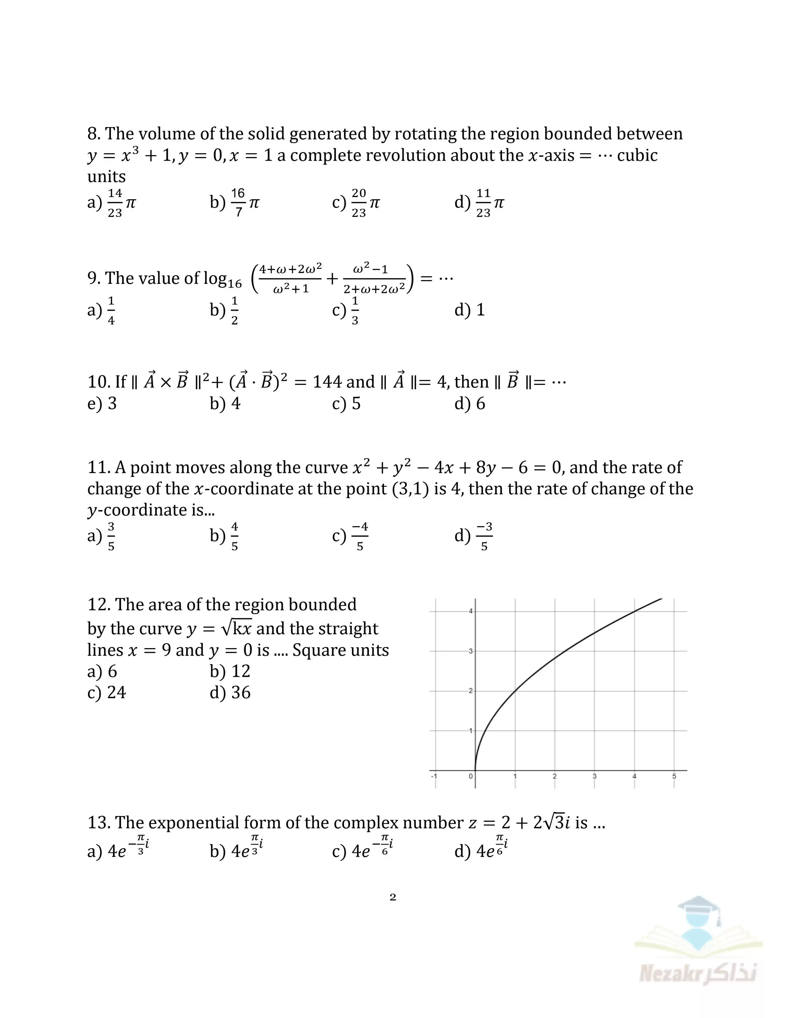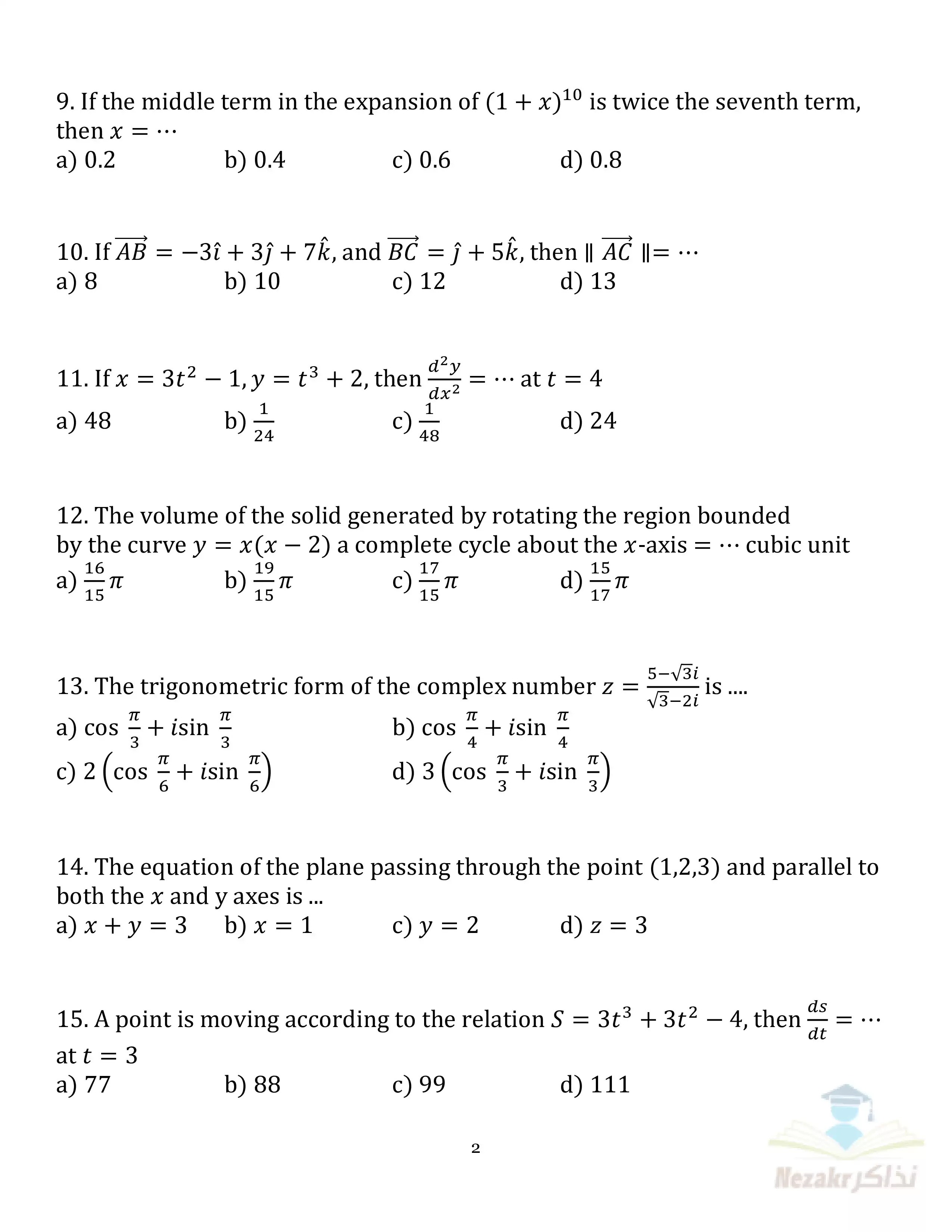 صفحة 2 من 6 صفحة من ملف: نماذج الوزارة الاسترشادية في امتحان الرياضيات البحتة للغات Pure Math للصف الثالث الثانوي 2025 - Nezakr