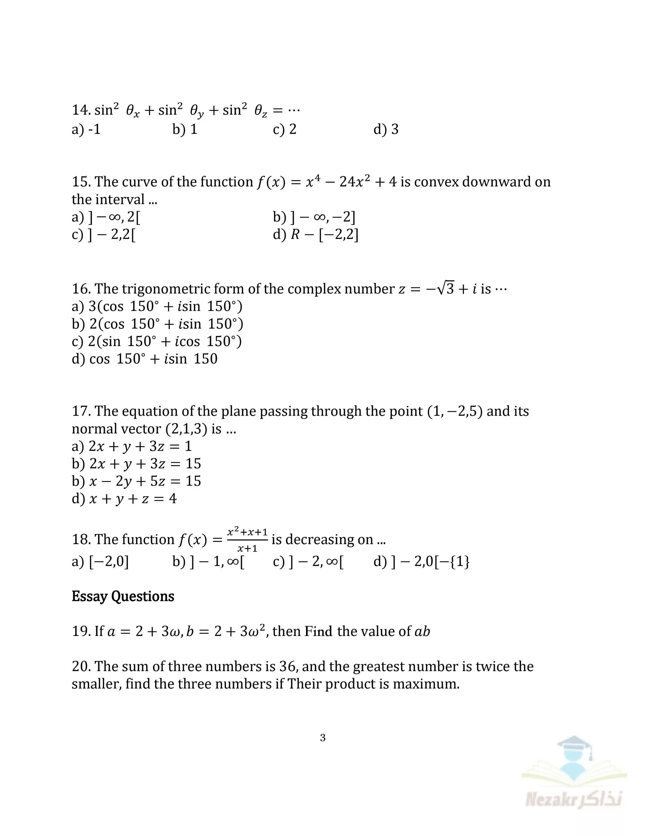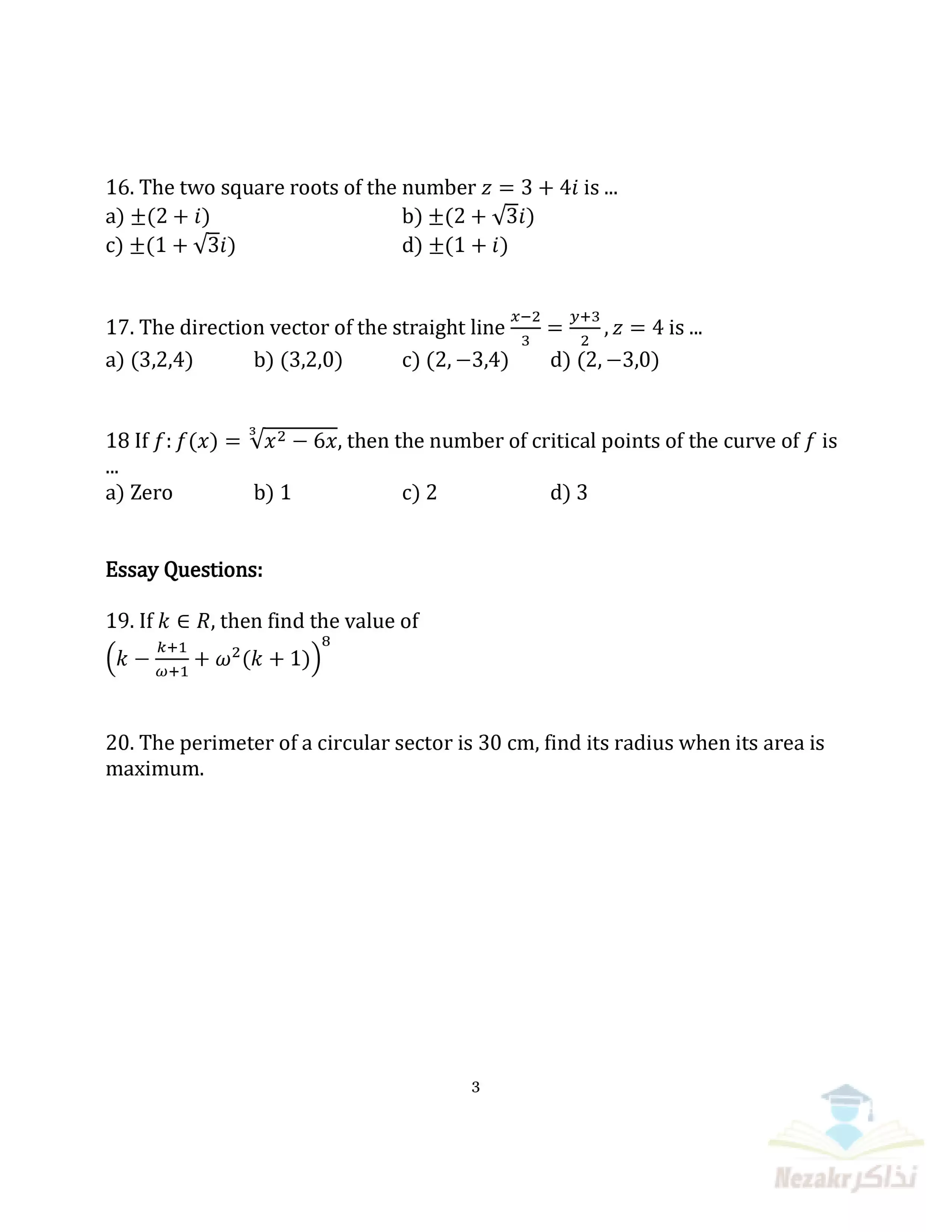 صفحة 3 من 6 صفحة من ملف: نماذج الوزارة الاسترشادية في امتحان الرياضيات البحتة للغات Pure Math للصف الثالث الثانوي 2025 - Nezakr