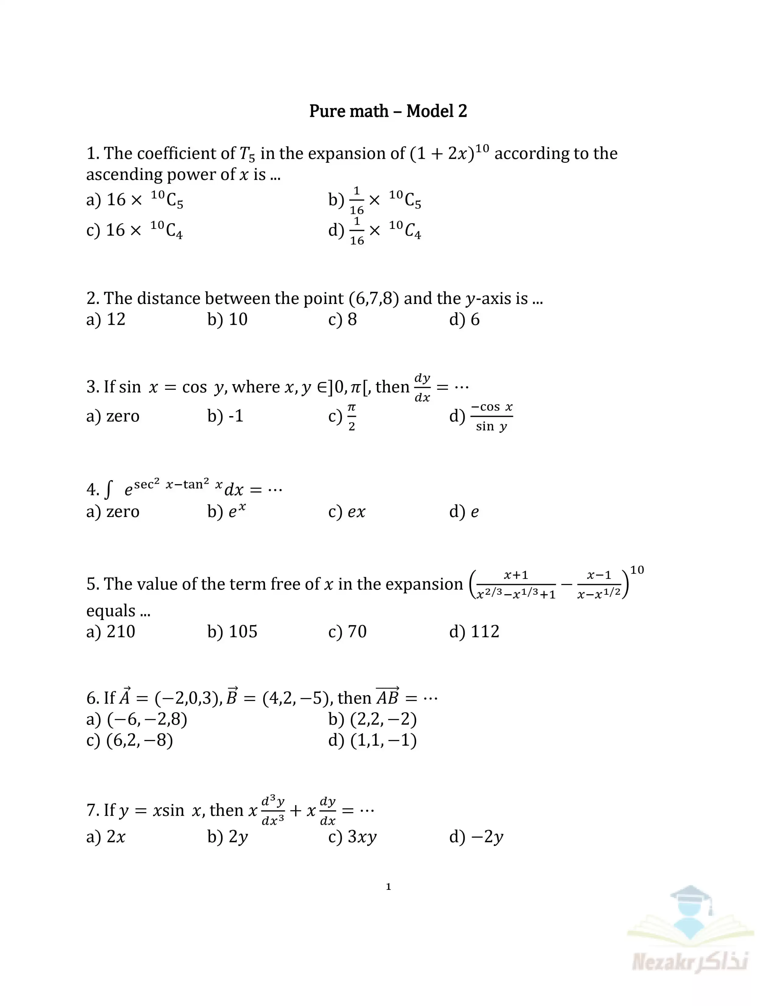 بيانات الملف: (نماذج الوزارة الاسترشادية في امتحان الرياضيات البحتة للغات Pure Math للصف الثالث الثانوي 2025 - Nezakr)