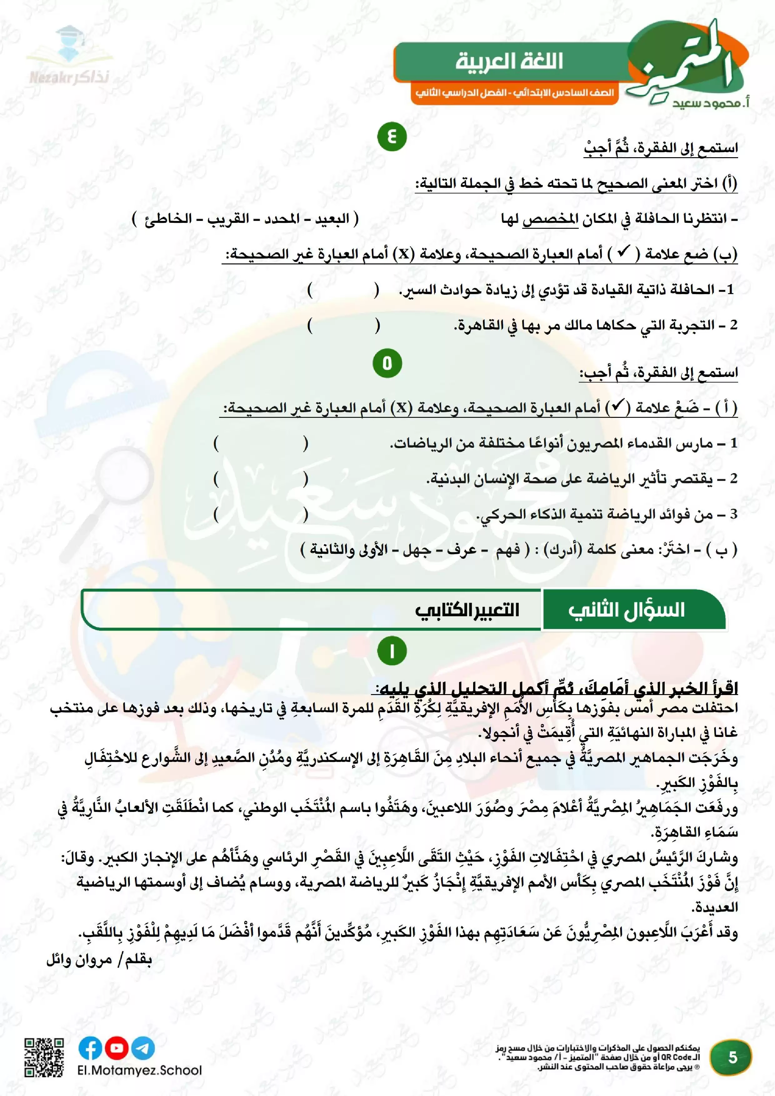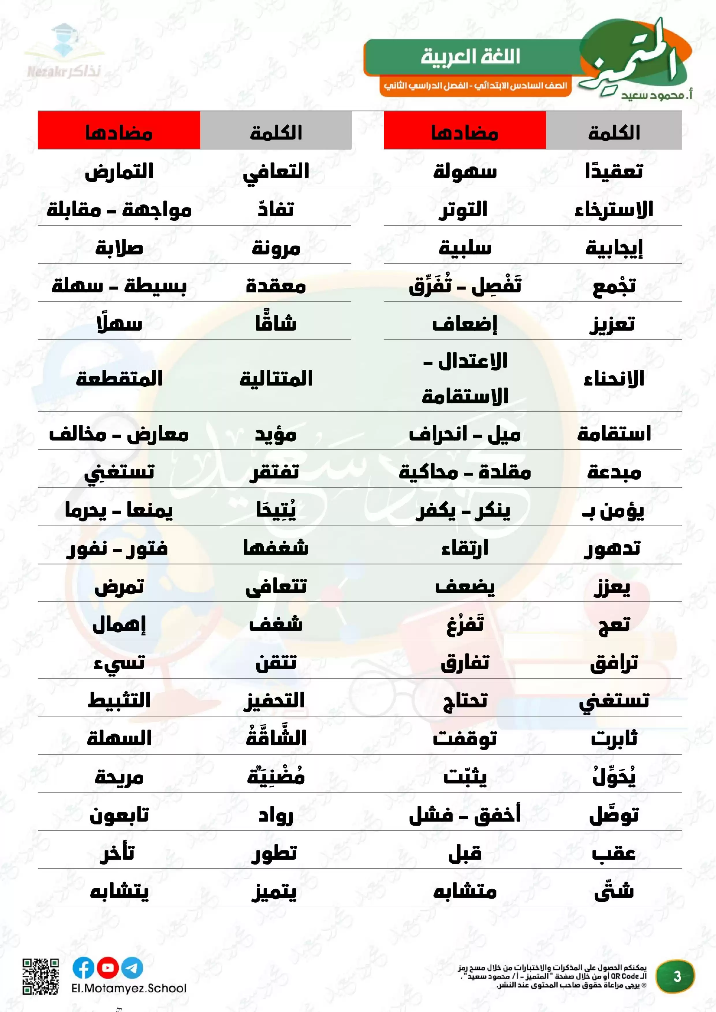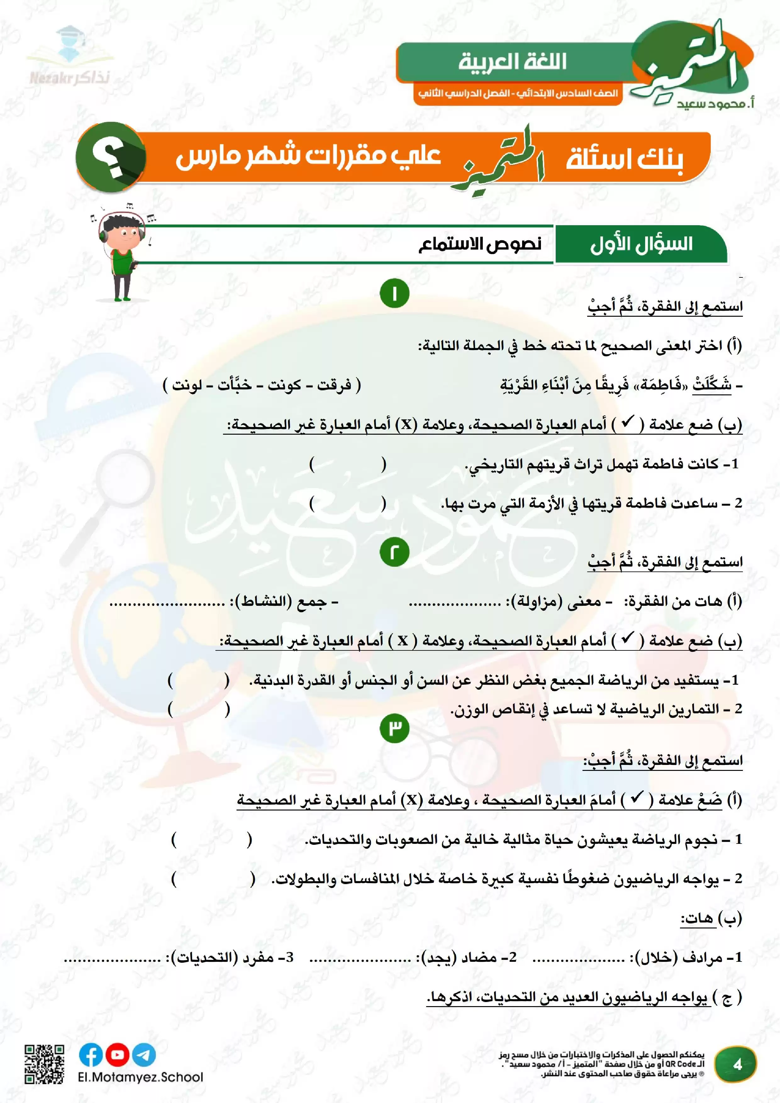 يحتوى الملف المرفق في المقال على ملف مراجعة مادة اللغة العربية من كتاب المتميز الخاص بالصف السادس الابتدائي الفصل الدراسي الثاني لشهر مارس, وذلك لتتمكن من تشغيله على جهاز الموبايل أو من خلال جهاز الكمبيوتر أو عبر اللابتوب أو التابلت لضمان سهولة الوصول الى الكتاب والمذاكرة عليه.