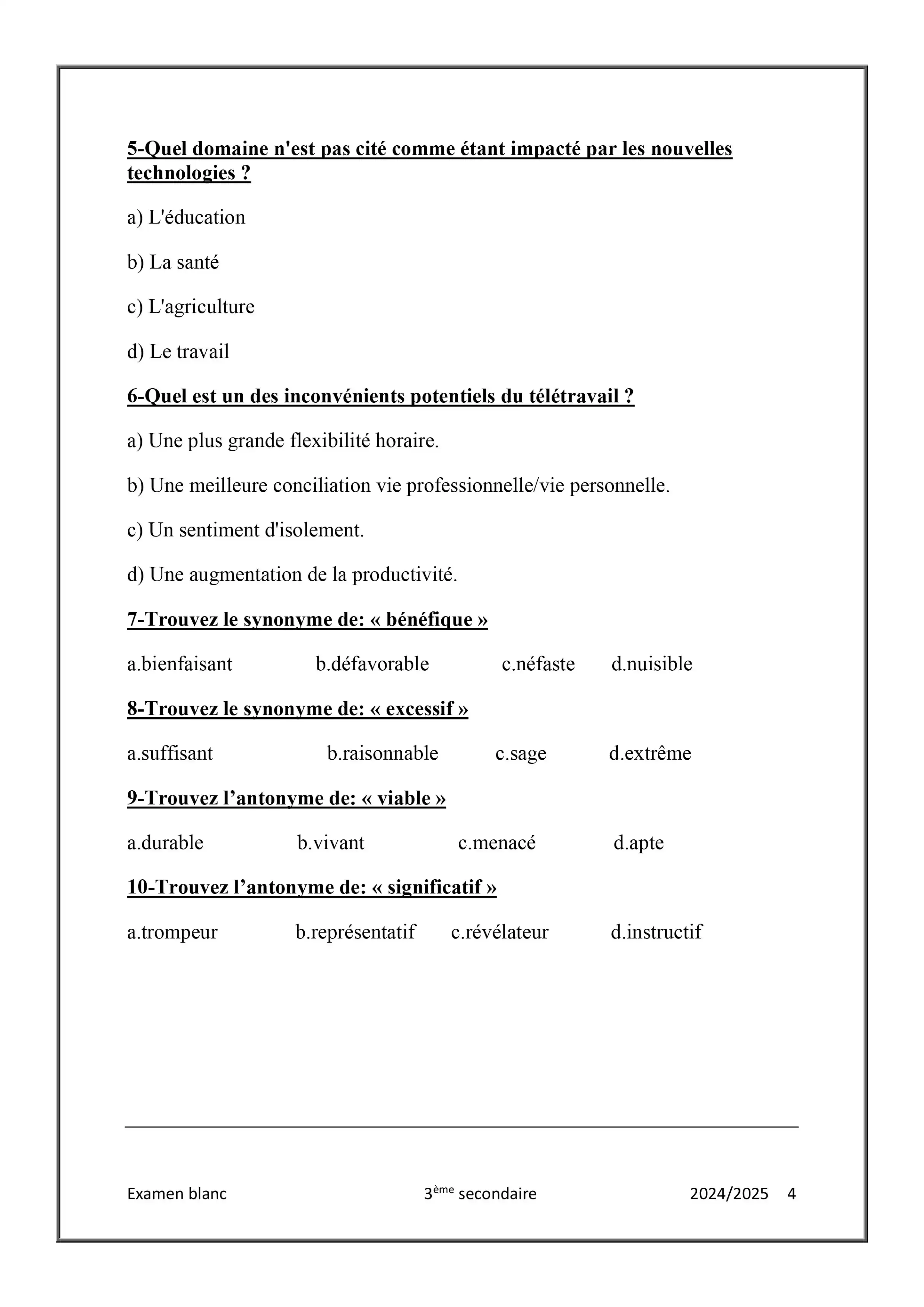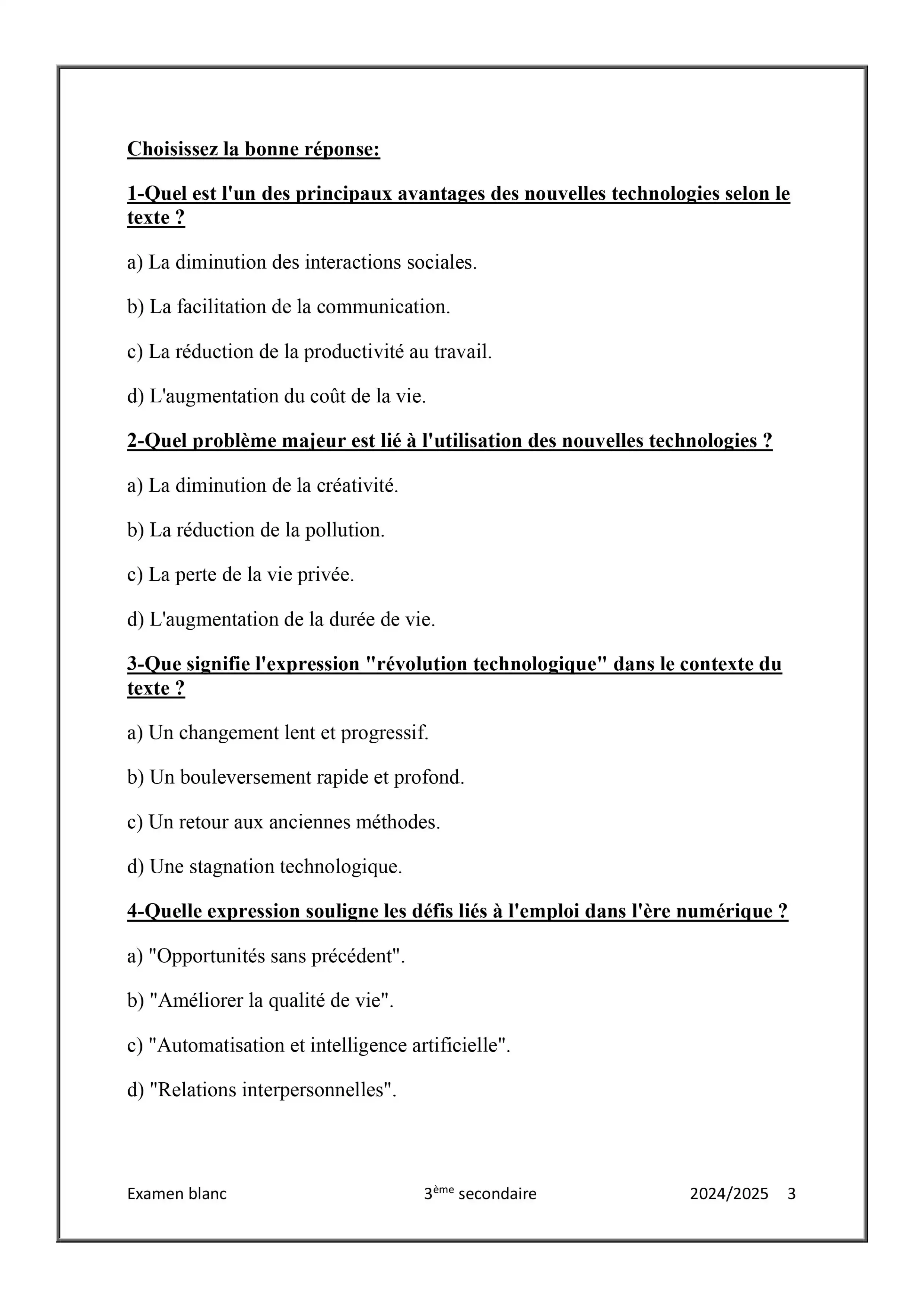 • امتحان فرنساوي تجريبي للثانوية العامة 2025