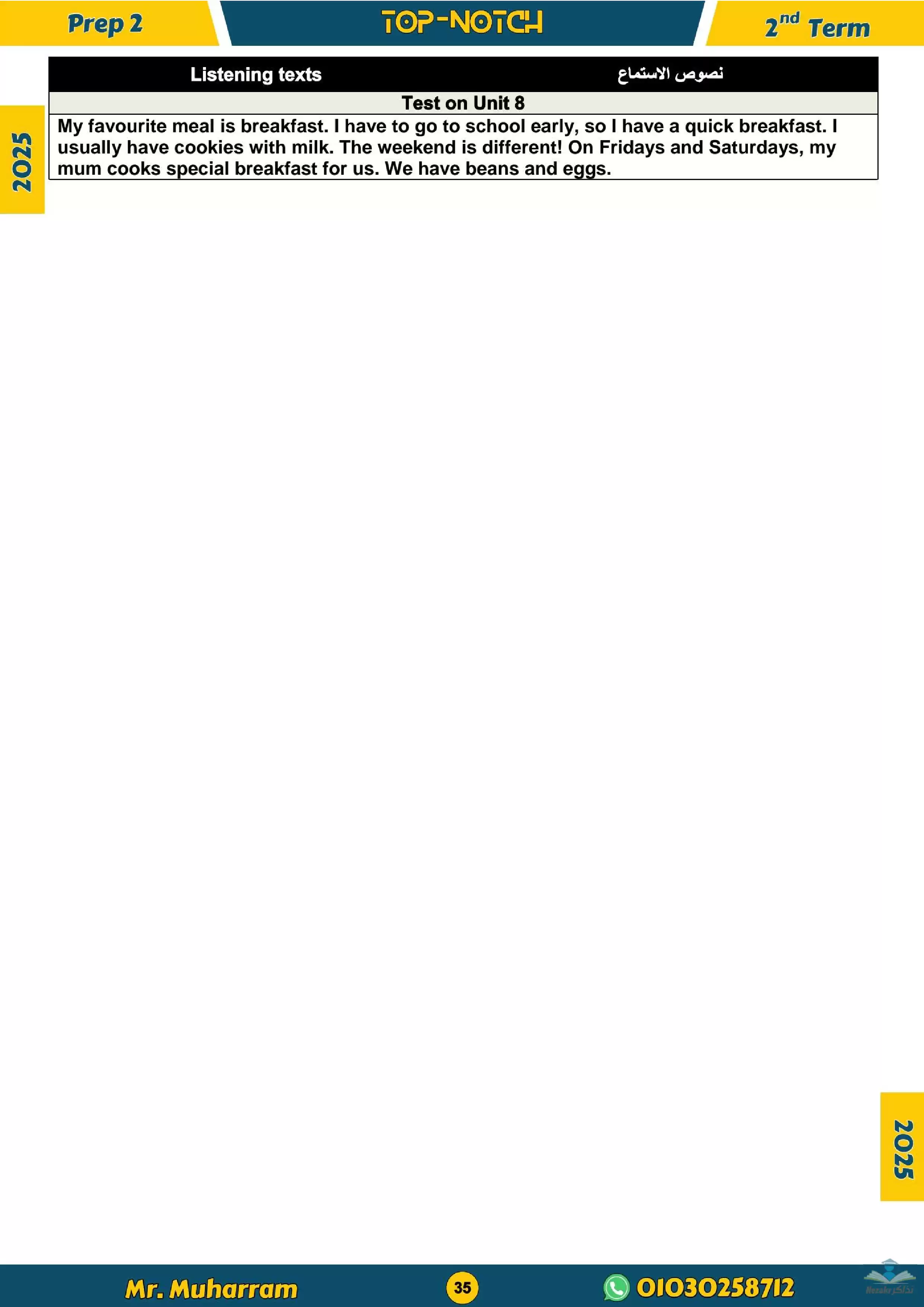 الملف متاح بصيغة PDF مجاناً حيث أنه يمكنك طباعته أو تحميله للتصفح على التابلت، ليساعد الطلاب على الاستعداد الكامل لامتحانات الترم الثاني للشهادة الإعدادية.