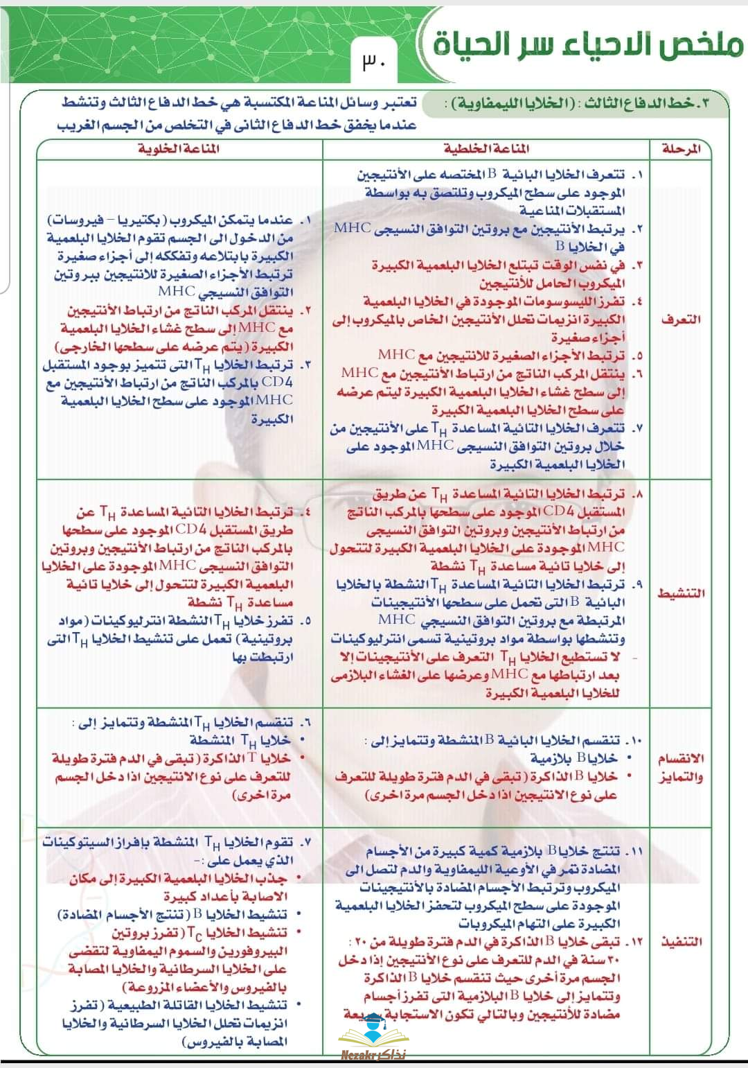 ملخص مهم ورائع ووافي للمناعة في الكائنات الحية من إعداد خبير مادة الأحياء الأستاذ حسن محرم .. المراجعة النهائية لفصل المناعة في الكائنات الحية مادة الأحياء للصف الثالث الثانوي |