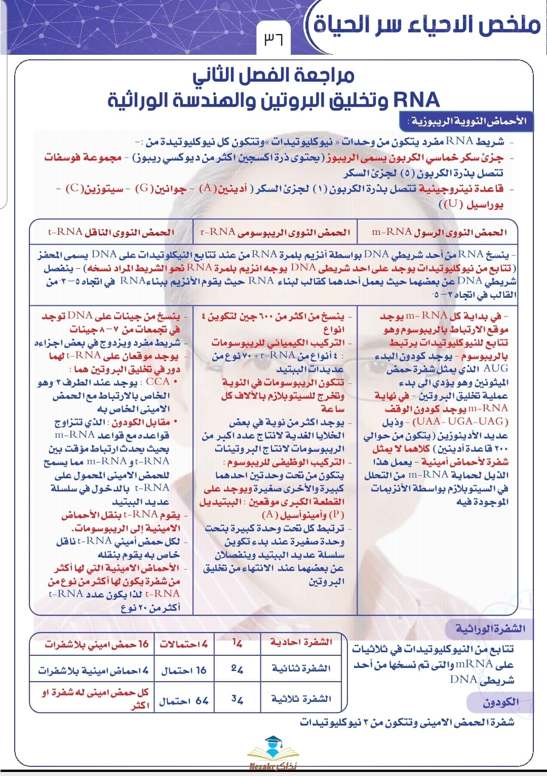 من رفع مدير الموقع - ملخص مهم للباب الثاني : البيولوجية الجزيئية (الحمض النووى Dna والمعلومات الوراثية والأحماض النووية الريبوزية Rna وتخليق البروتين والهندسة الوراثية) مادة الأحياء الصف الثالث الثانوي