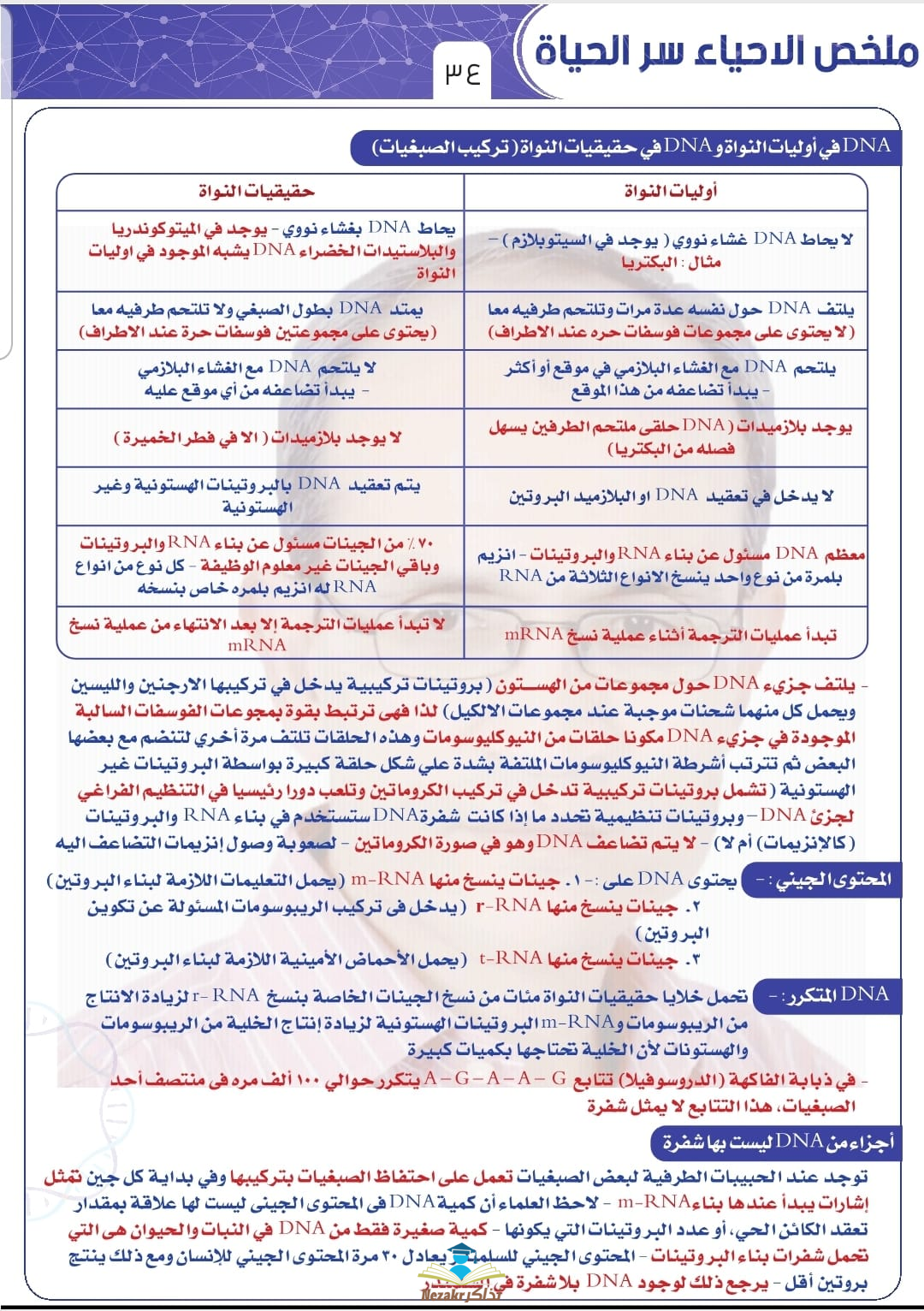 من رفع مدير الموقع - ملخص مهم للباب الثاني : البيولوجية الجزيئية (الحمض النووى Dna والمعلومات الوراثية والأحماض النووية الريبوزية Rna وتخليق البروتين والهندسة الوراثية) مادة الأحياء الصف الثالث الثانوي