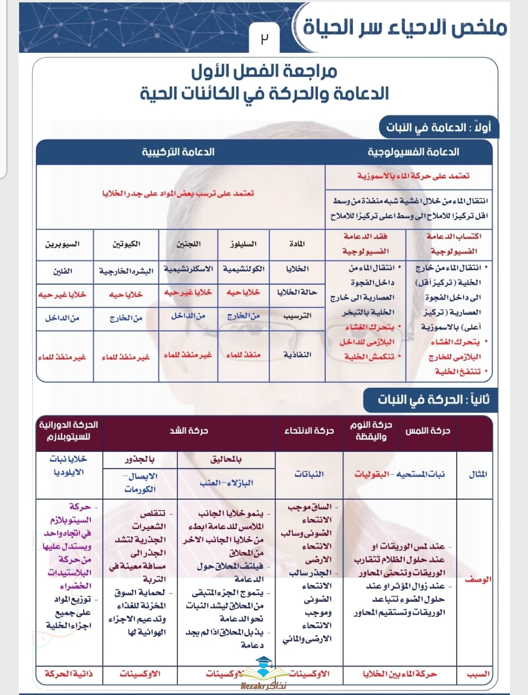 مراجعة نهائية في مادة الأحياء للصف الثالث الثانوي على فصلي الدعامة والحركة والتنسيق الهرموني من إعداد الأستاذ حسن محرم