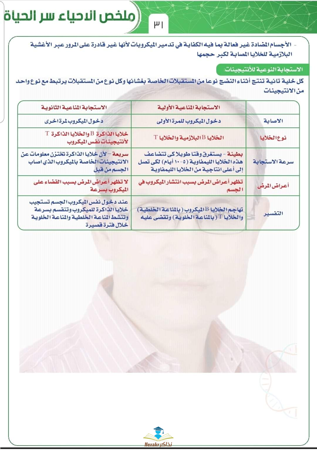 ملخص مهم ورائع ووافي للمناعة في الكائنات الحية من إعداد خبير مادة الأحياء الأستاذ حسن محرم ..
