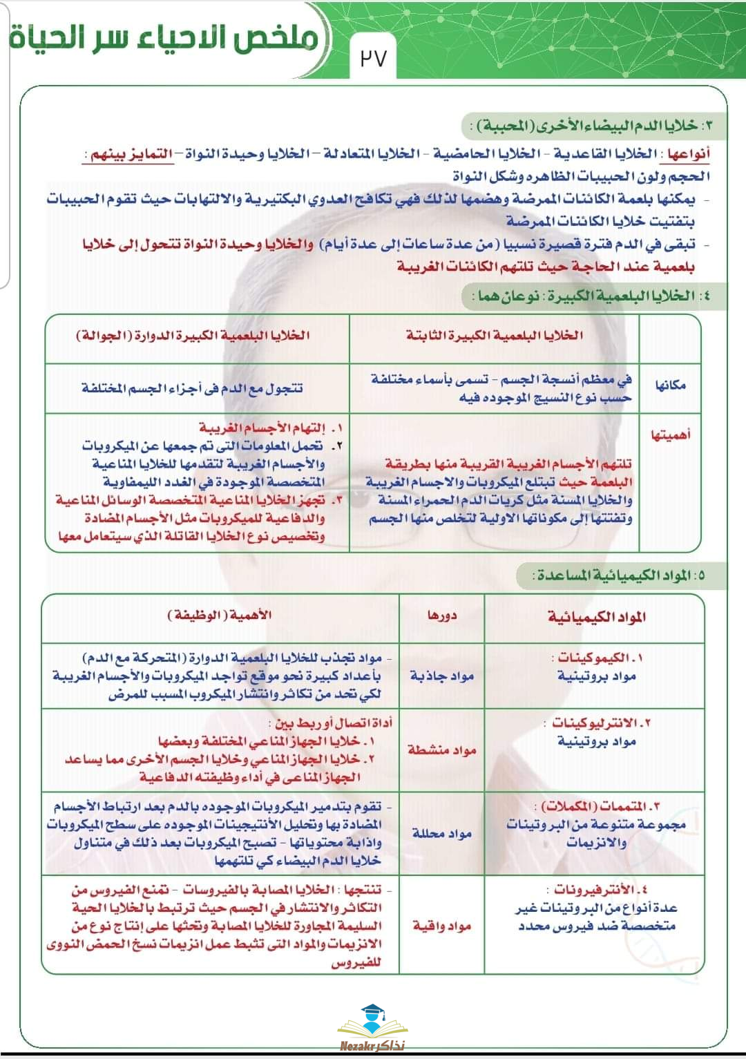 | وصف المحتوى | تذكر ما نسيت في شكل سريع .. ملخص مهم للفصل الرابع : المناعة في الكائنات الحية بشكل مبسط جداً من إعداد خبير مادة الأحياء بوزارة التربية والتعليم الأستاذ حسن محرم.