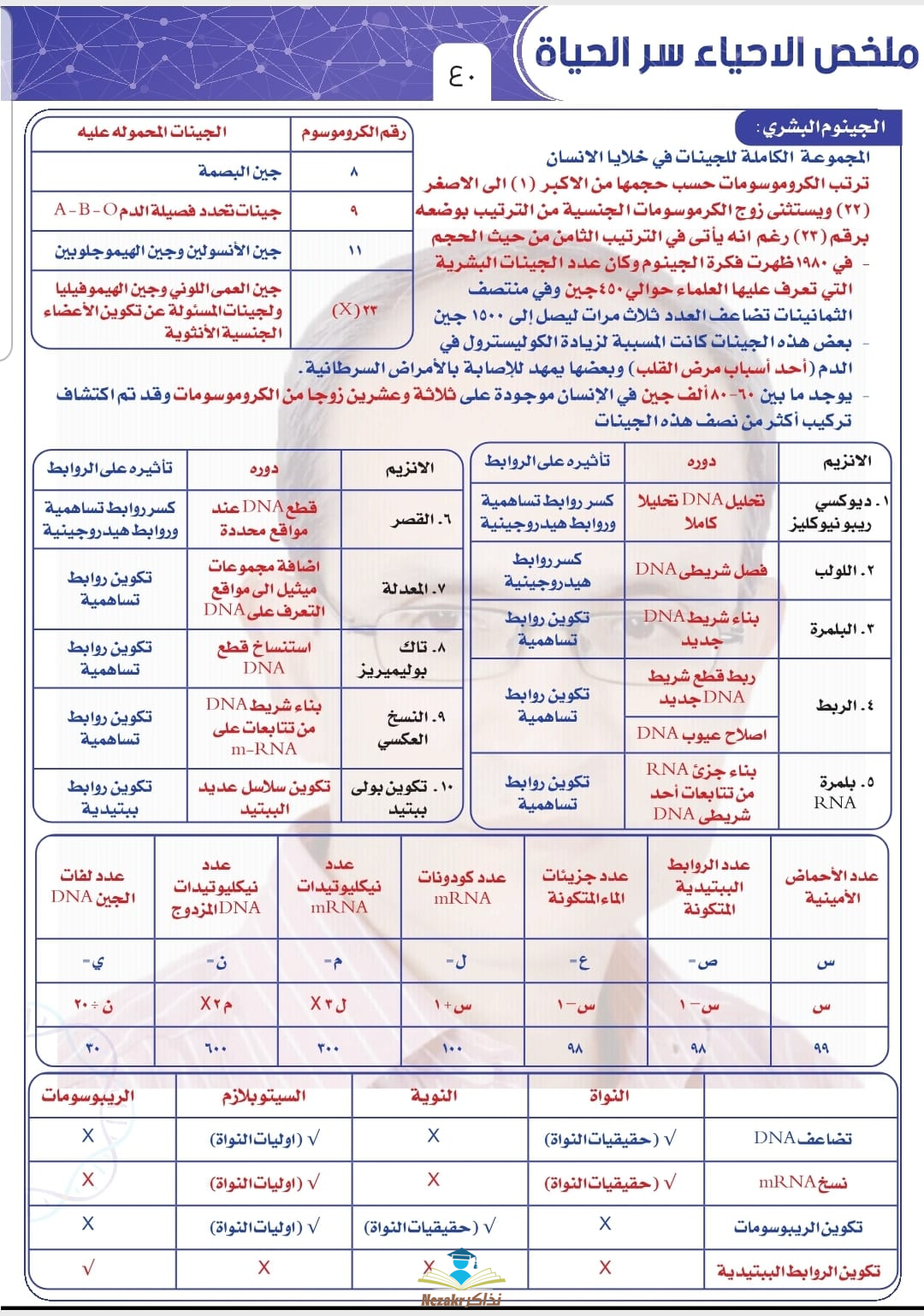 من رفع مدير الموقع - ملخص مهم للباب الثاني : البيولوجية الجزيئية (الحمض النووى Dna والمعلومات الوراثية والأحماض النووية الريبوزية Rna وتخليق البروتين والهندسة الوراثية) مادة الأحياء الصف الثالث الثانوي