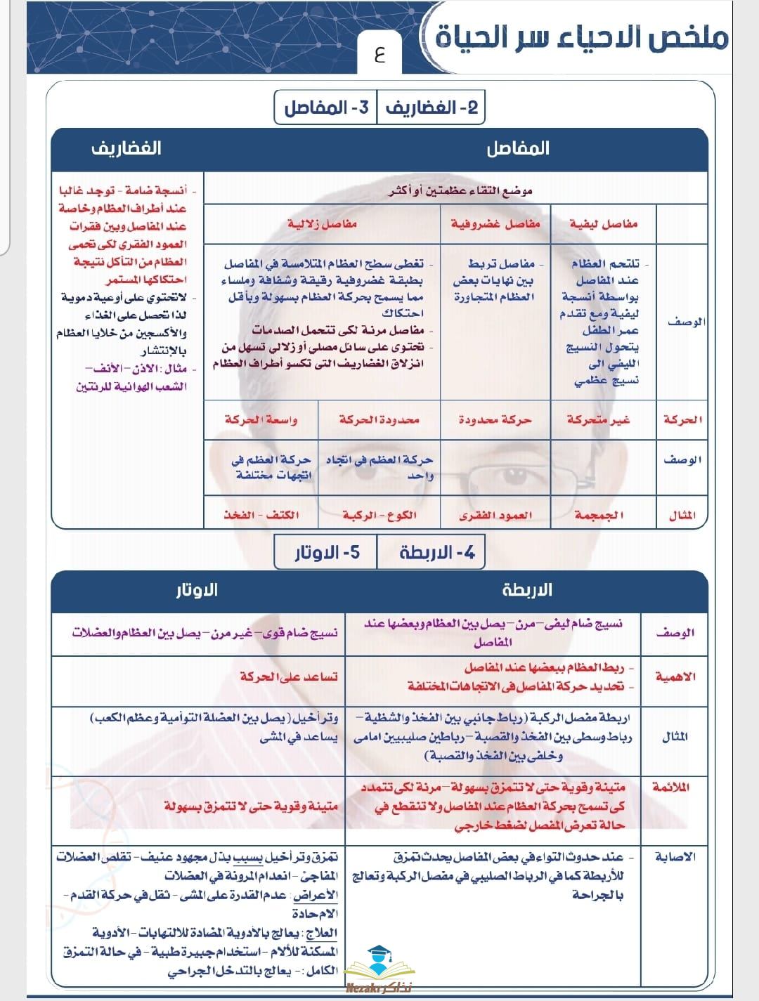 من رفع مدير الموقع - مراجعة نهائية على فصلي الدعامة والحركة والتنسيق الهرموني مادة الأحياء الصف الثالث الثانوي